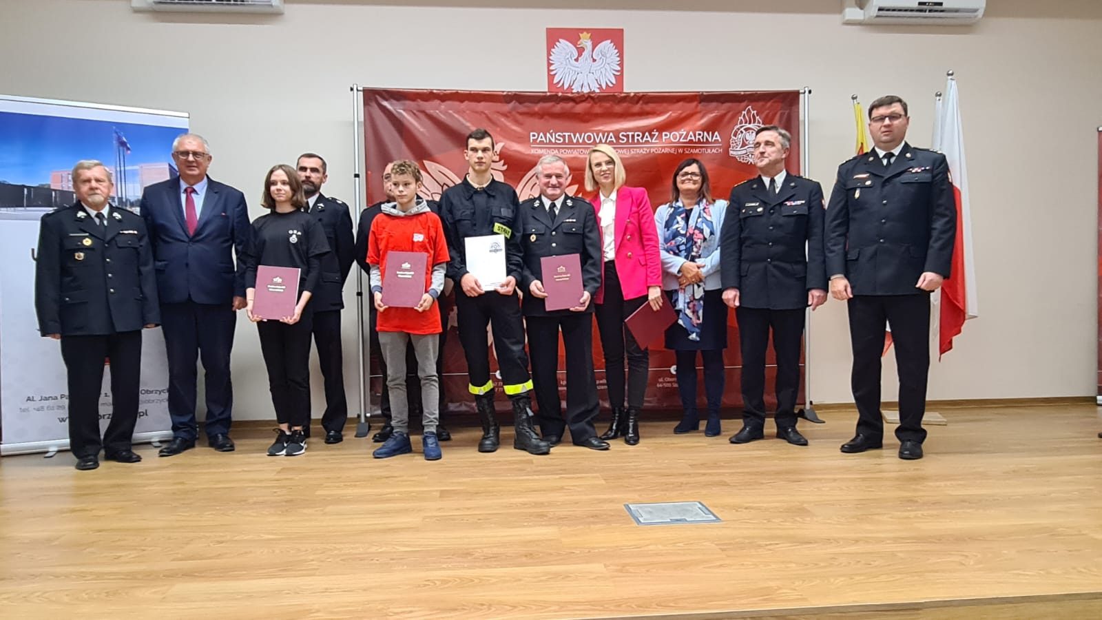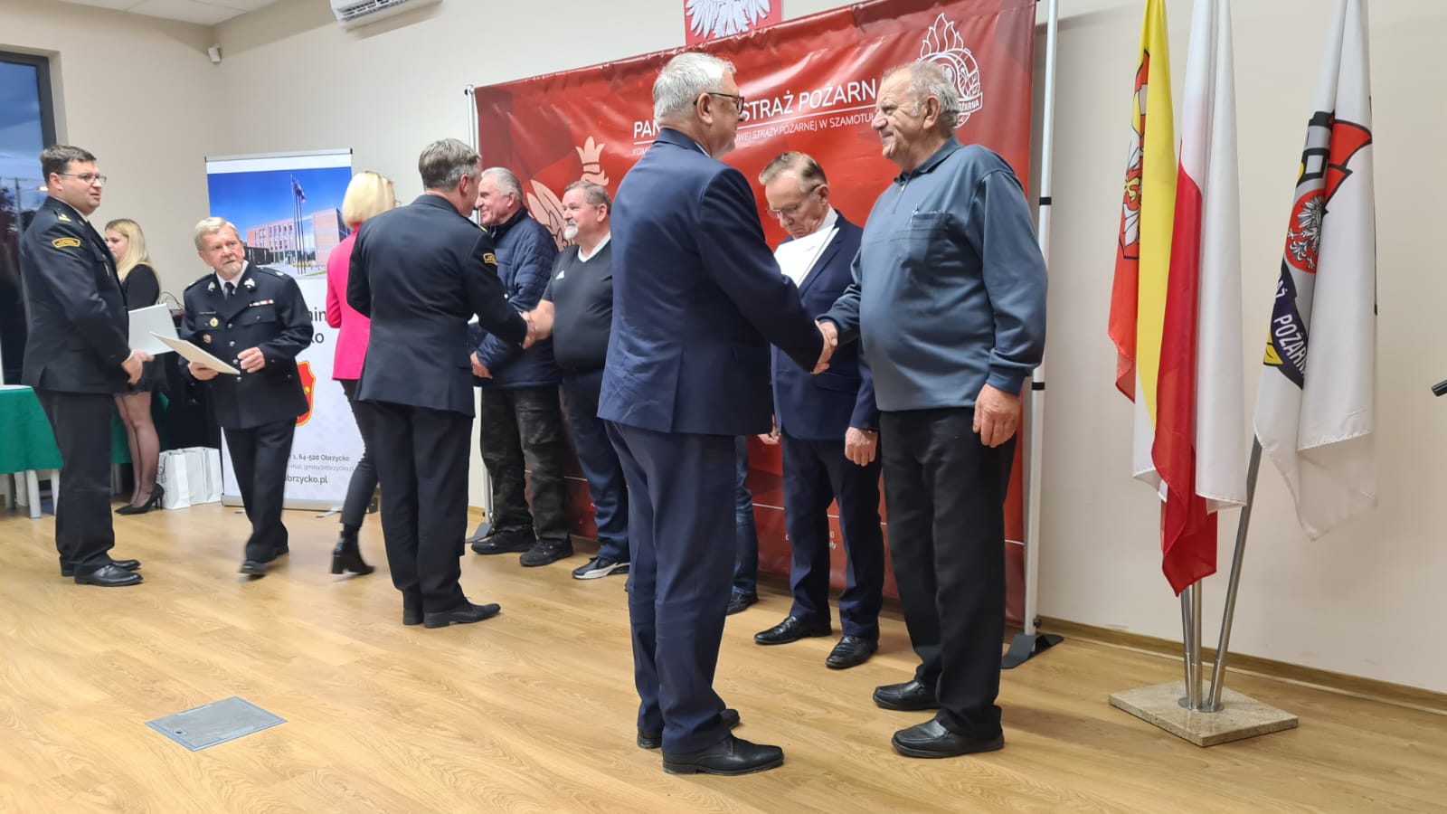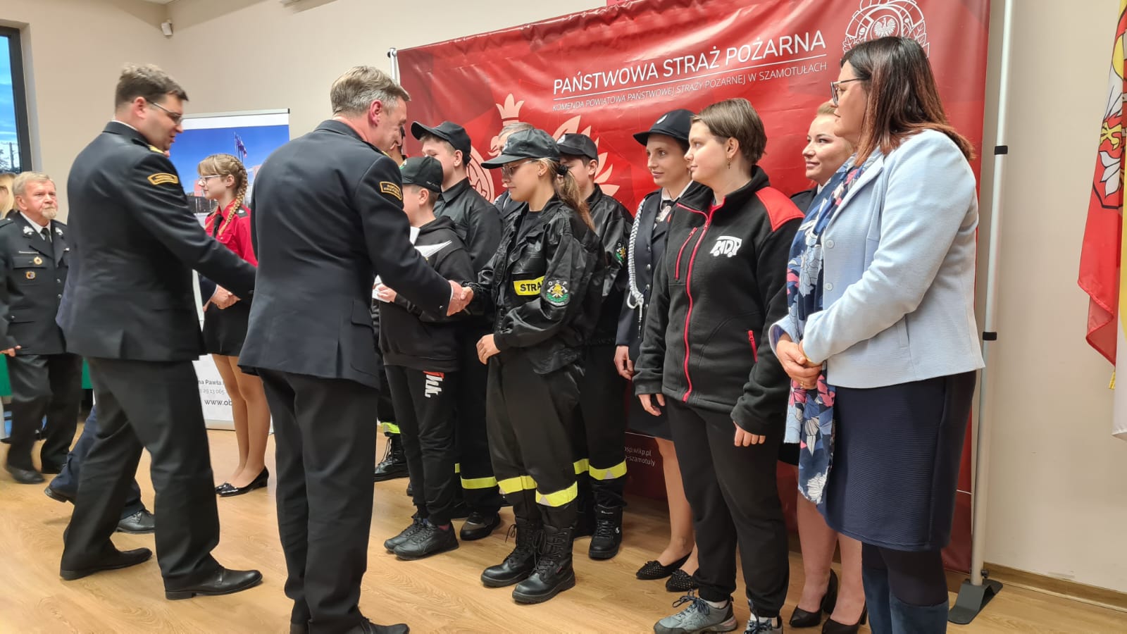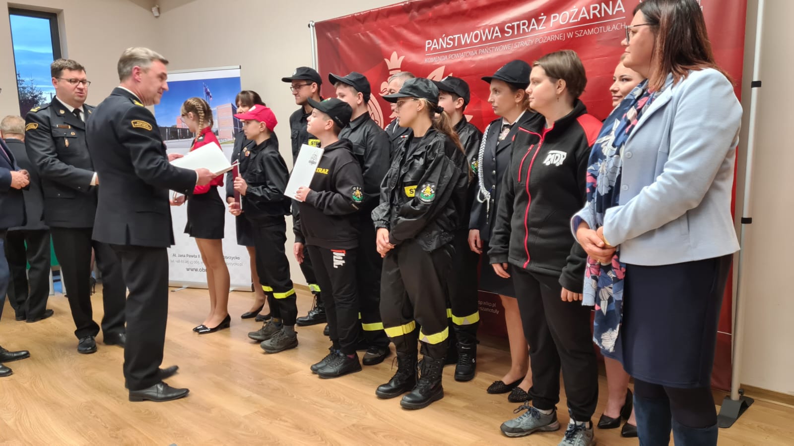 WRĘCZENIE PROMES NA DOTACJĘ MŁODZIEŻOWYCH DRUŻYN POŻARNICZYCH ORAZ DECYZJI O PRZYZNANIU ŚWIADCZENIA RATOWNICZEGO DLA ZASŁUŻONYCH STRAŻAKÓW POWIATU SZAMOTULSKIEGO