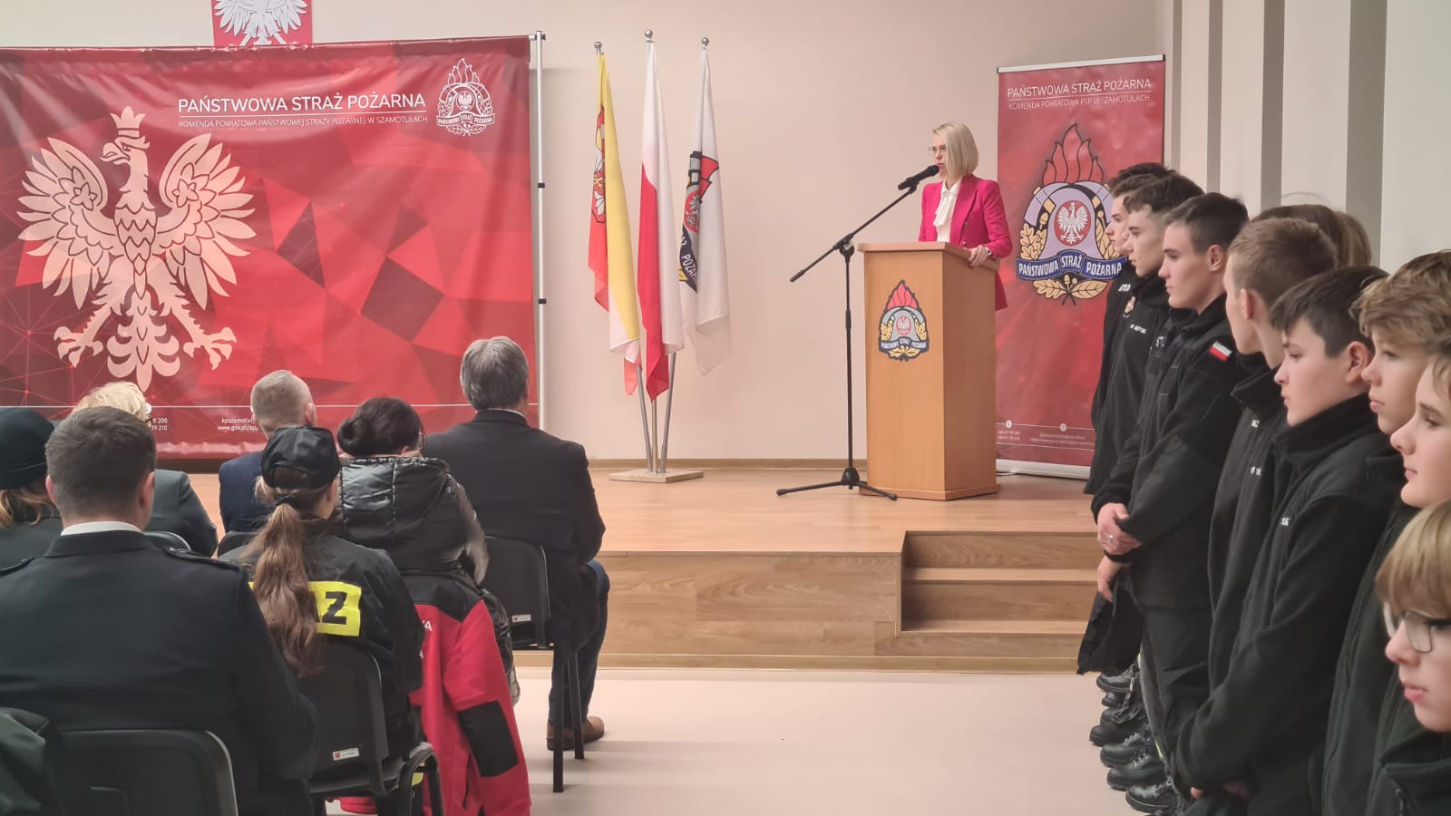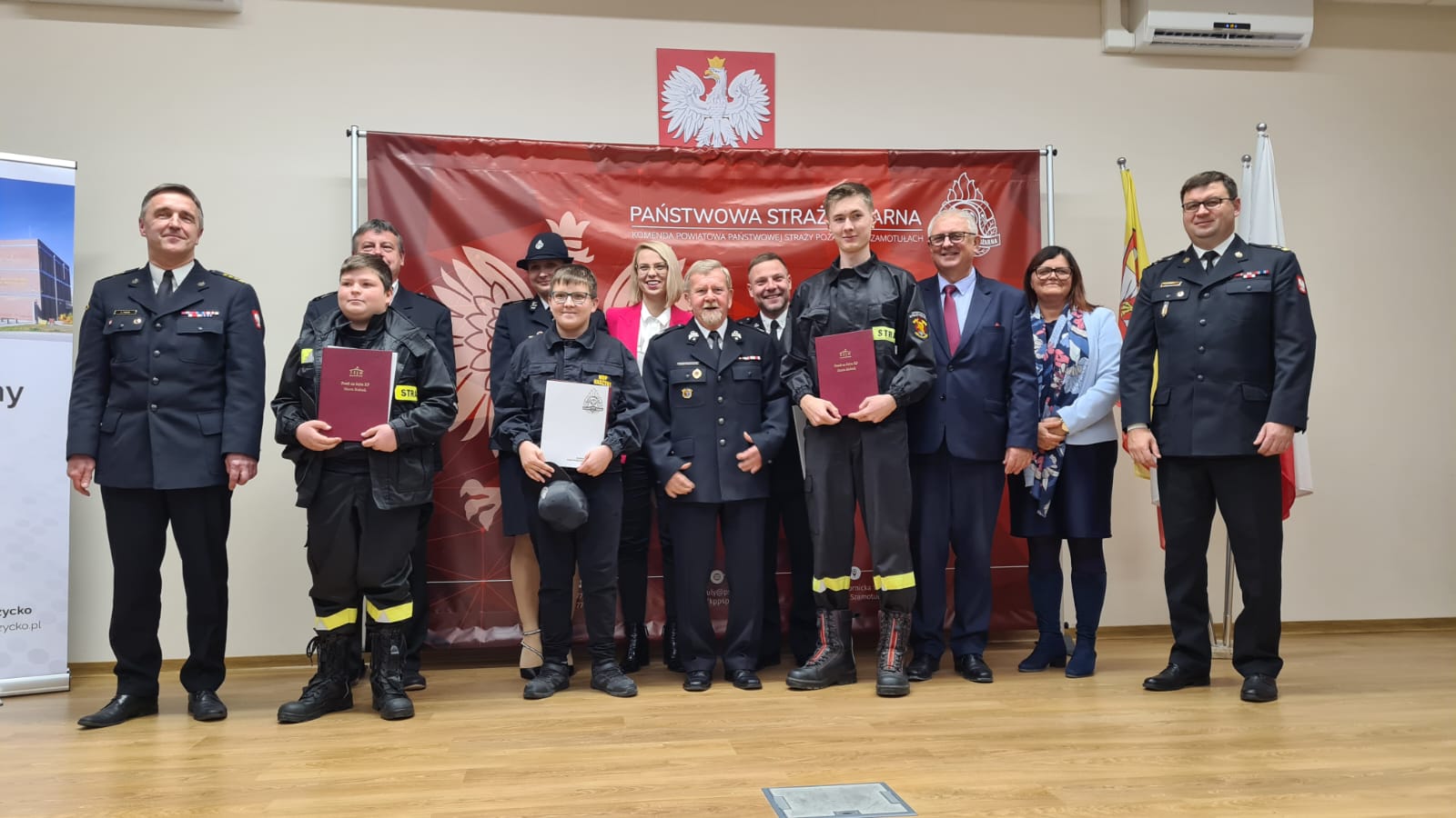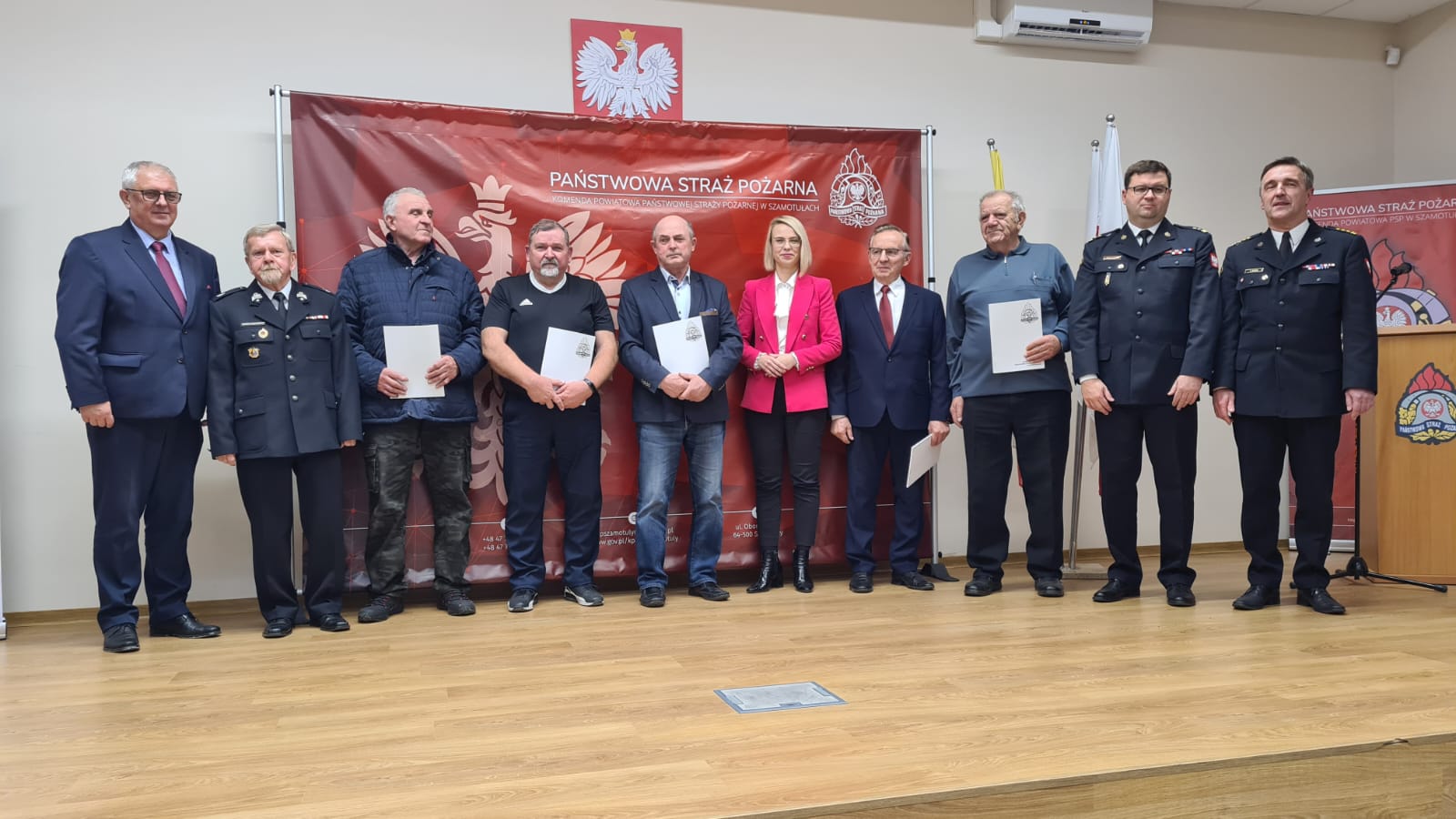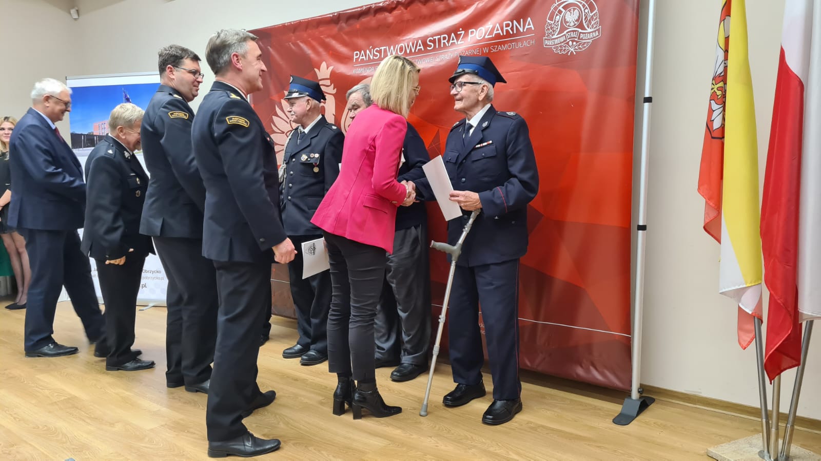 WRĘCZENIE PROMES NA DOTACJĘ MŁODZIEŻOWYCH DRUŻYN POŻARNICZYCH ORAZ DECYZJI O PRZYZNANIU ŚWIADCZENIA RATOWNICZEGO DLA ZASŁUŻONYCH STRAŻAKÓW POWIATU SZAMOTULSKIEGO