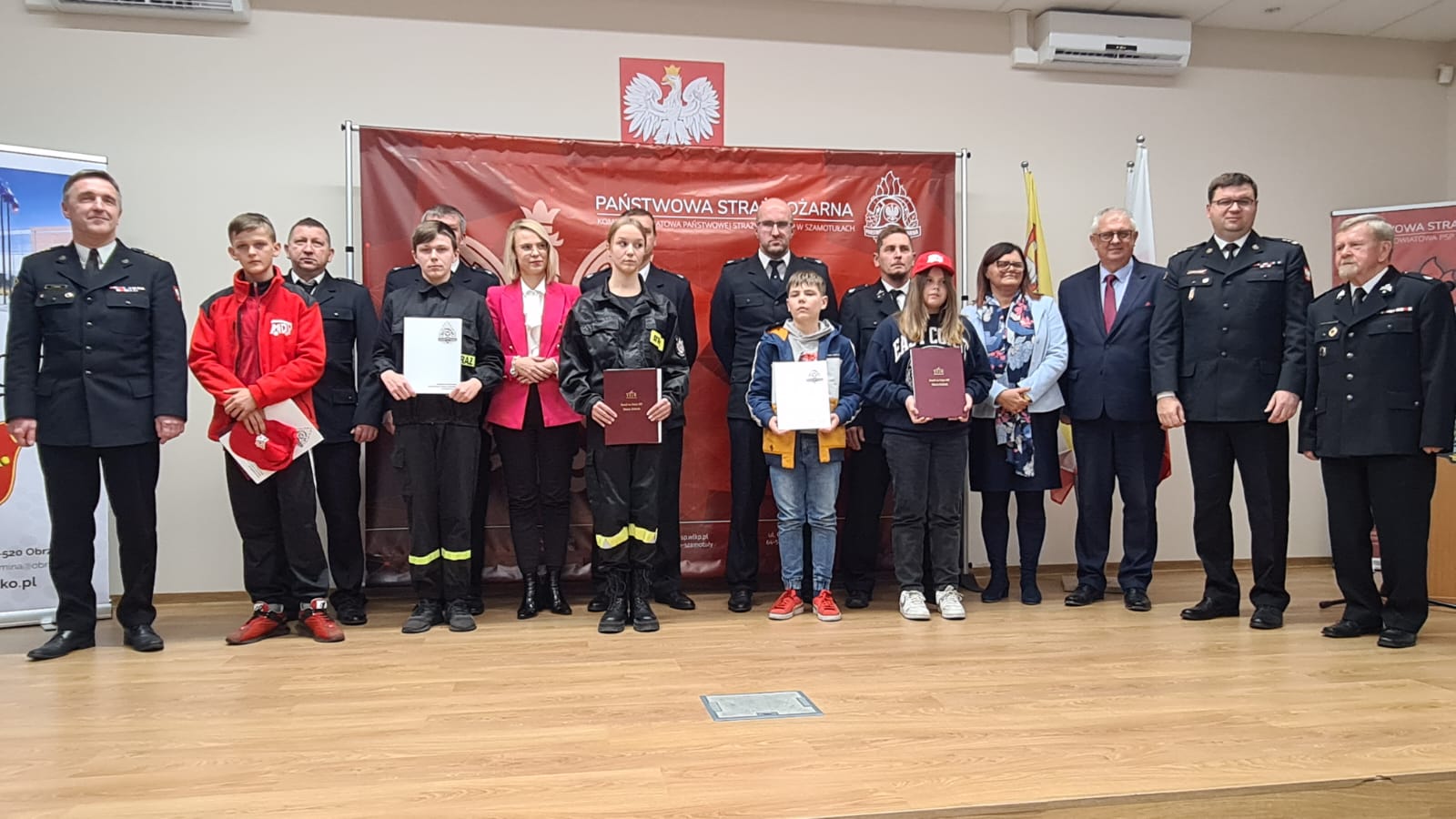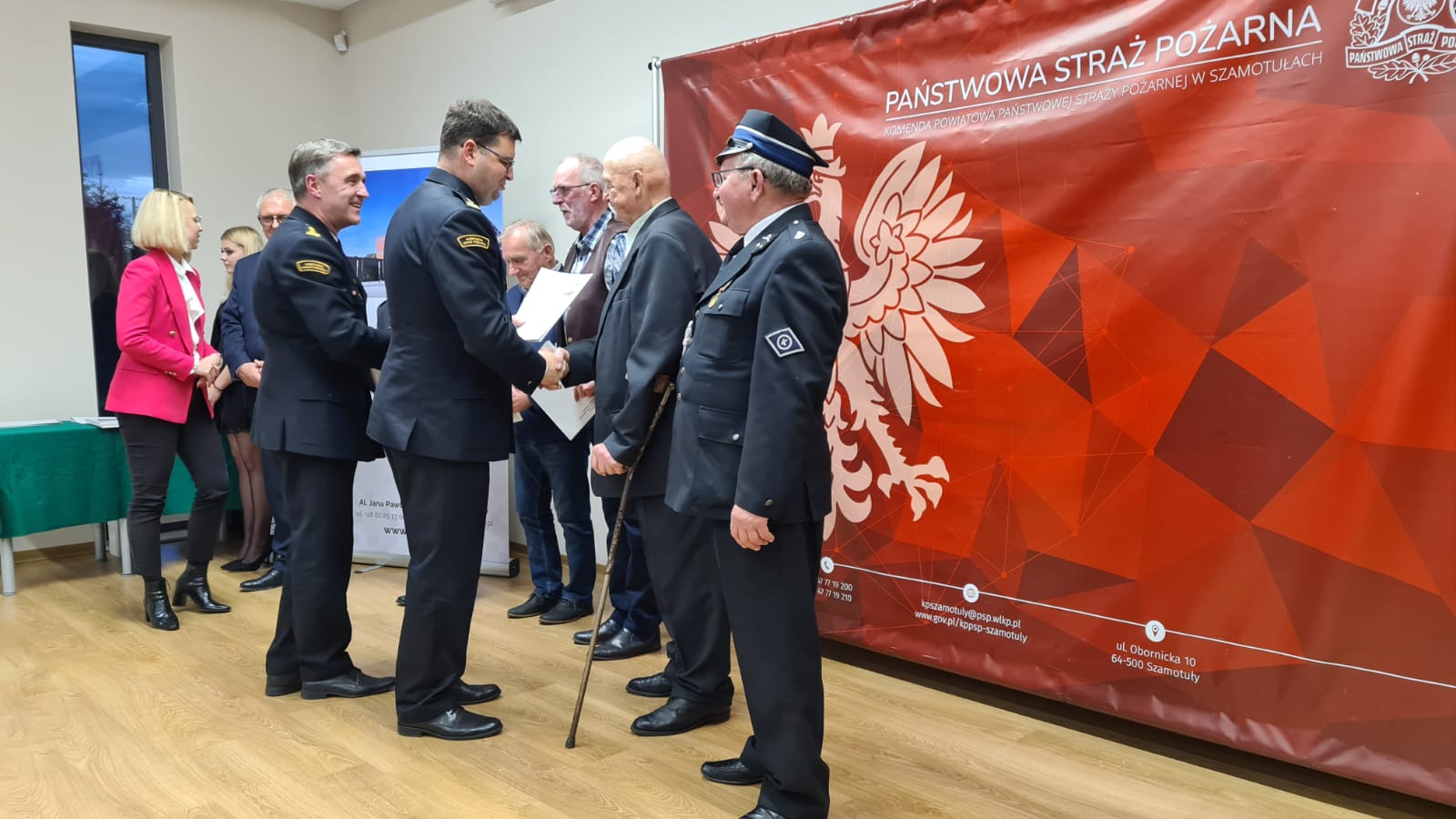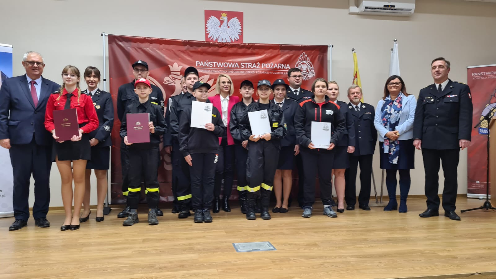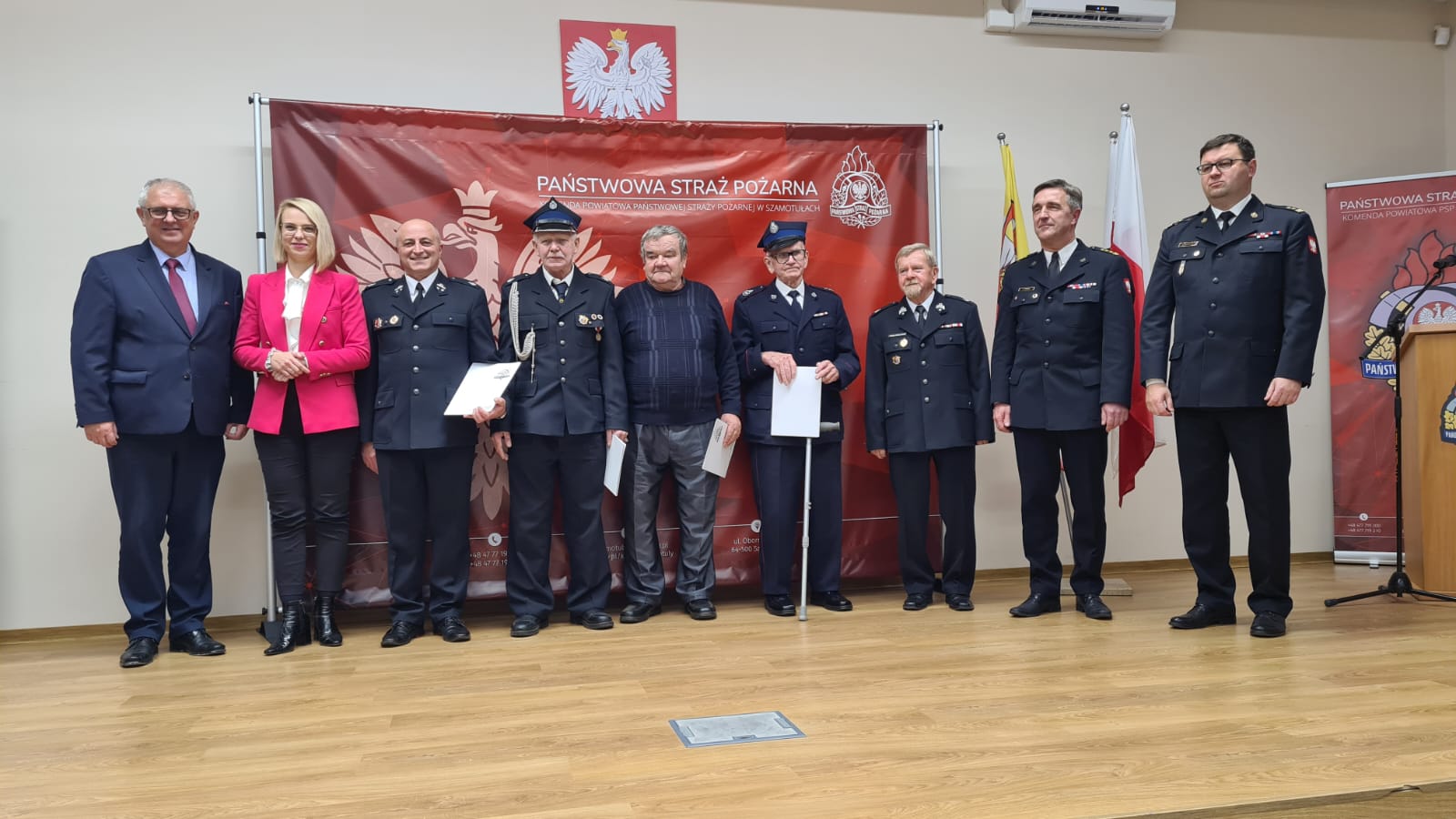 WRĘCZENIE PROMES NA DOTACJĘ MŁODZIEŻOWYCH DRUŻYN POŻARNICZYCH ORAZ DECYZJI O PRZYZNANIU ŚWIADCZENIA RATOWNICZEGO DLA ZASŁUŻONYCH STRAŻAKÓW POWIATU SZAMOTULSKIEGO