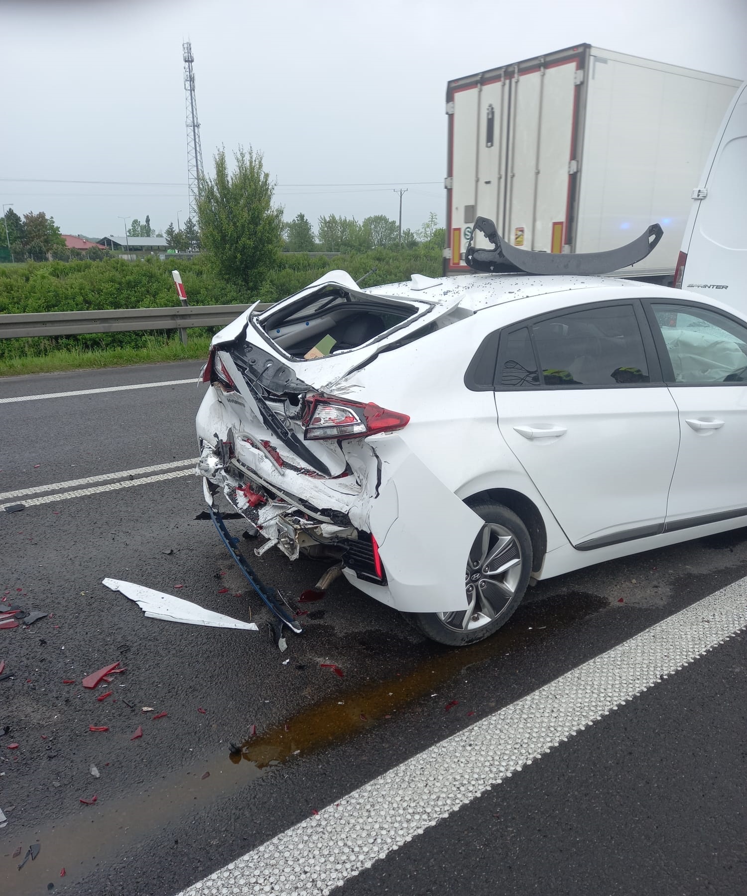 Po dojeździe na miejsce zdarzenia strażacy zastali samochód ciężarowy z naczepą, który uderzyła w pojazdy znajdujące się przed nim. Kierujący i pasażerowie opuścili pojazdy przed przybyciem SP i znajdowali się pod opieką ratowników ZRM.