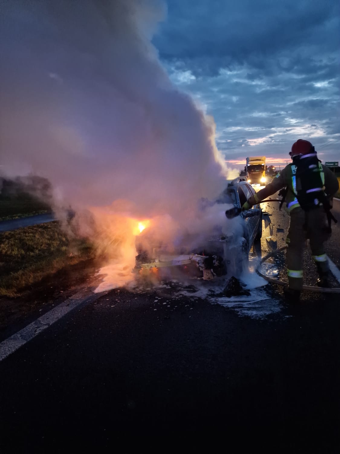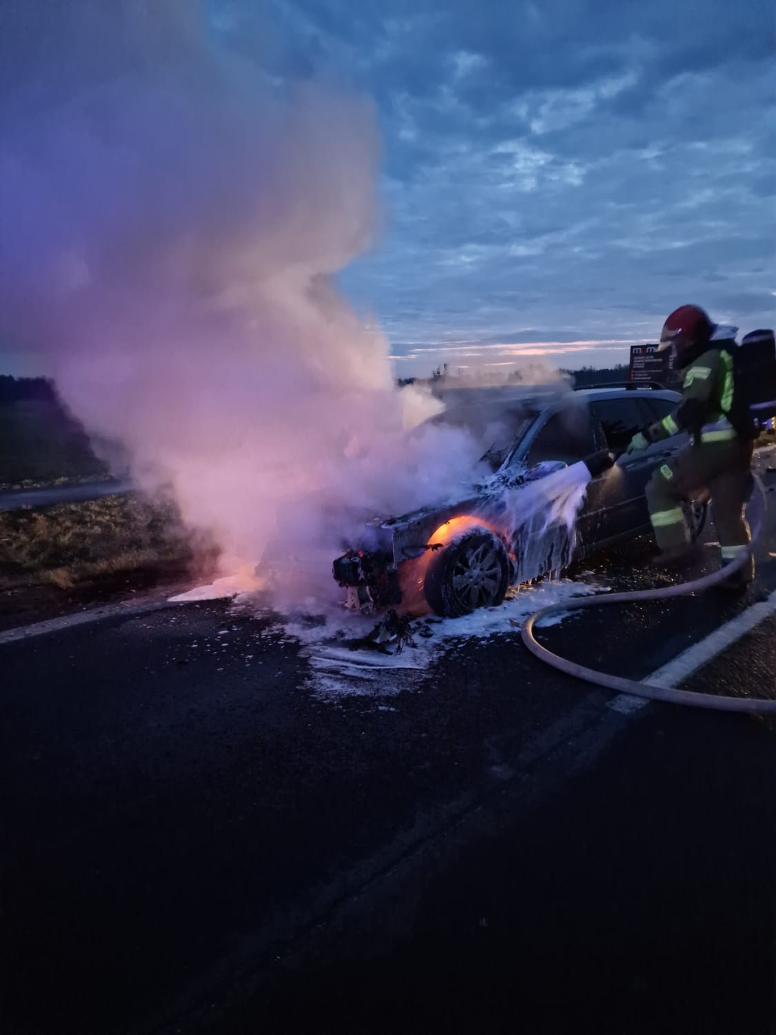 WYPADEK DROGOWY I POŻAR SAMOCHODU
