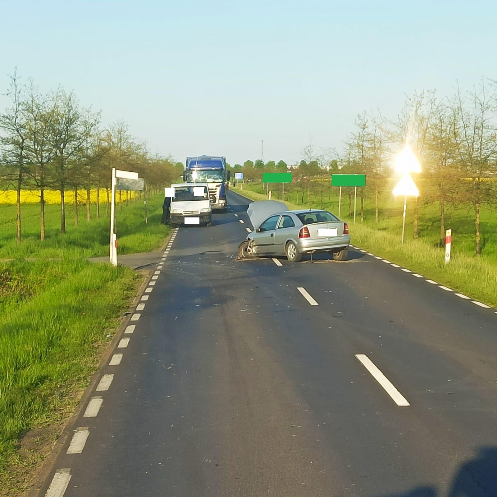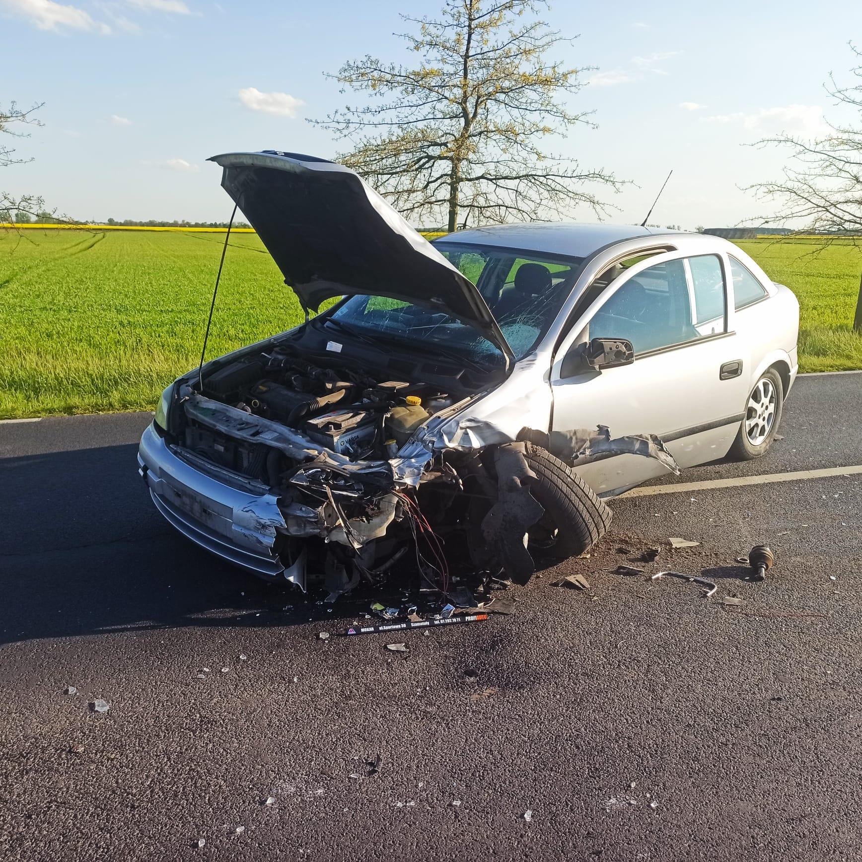 Po dojeździe na miejsce zdarzenia strażacy zastali samochód osobowy marki Opel, który zderzył się z motocyklem.