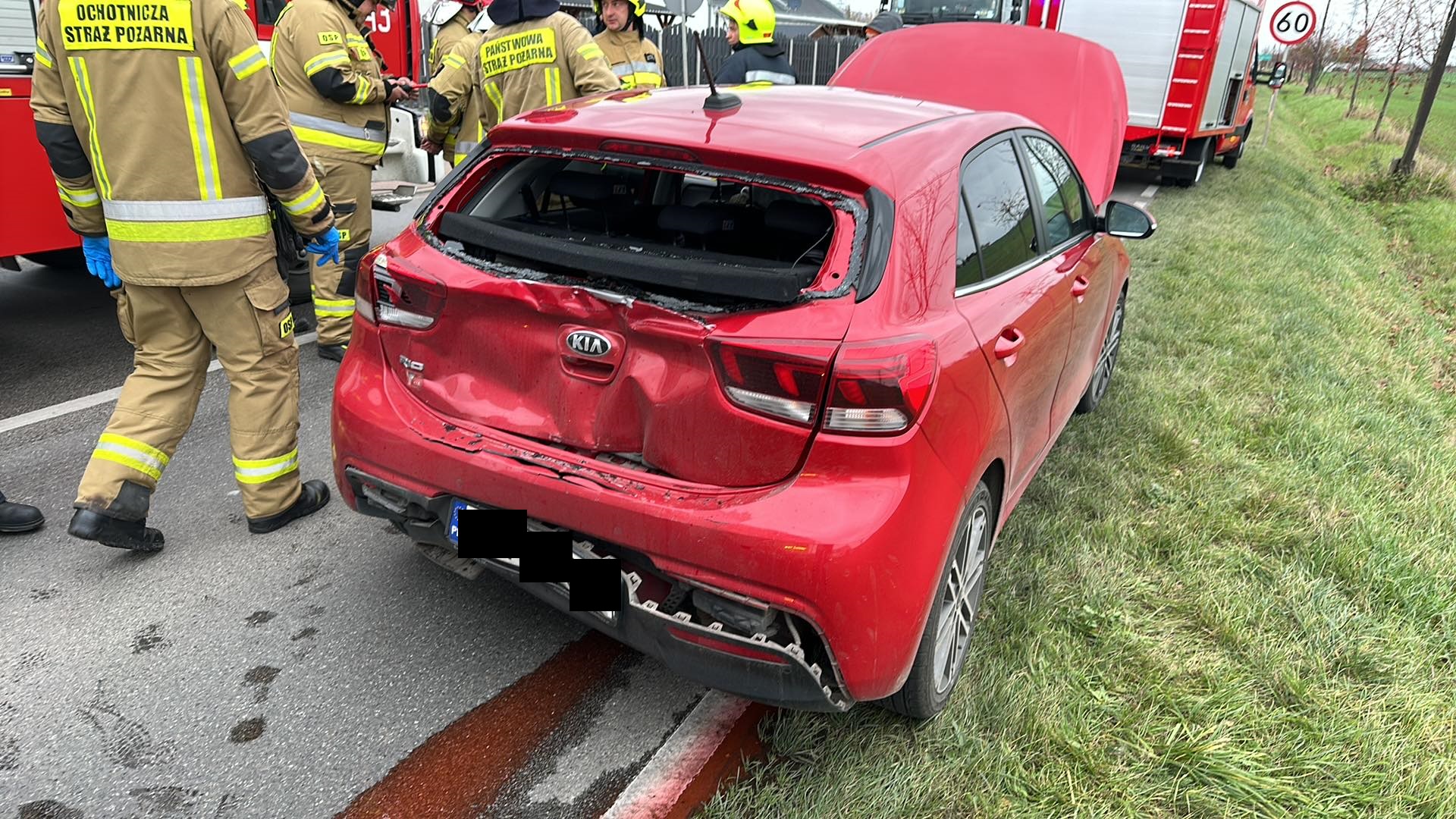 Po dojeździe na miejsce zdarzenia strażacy zastali samochód ciężarowy, który uderzył w tył pojazdu osobowego. Kierujący opuścili pojazdy przed przybyciem SP i znajdowali się w pobliżu. Kobieta w ciąży została lekko poszkodowana. Droga wojewódzka nr 187 była zablokowana.