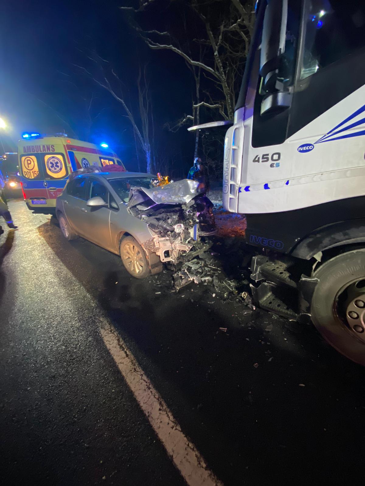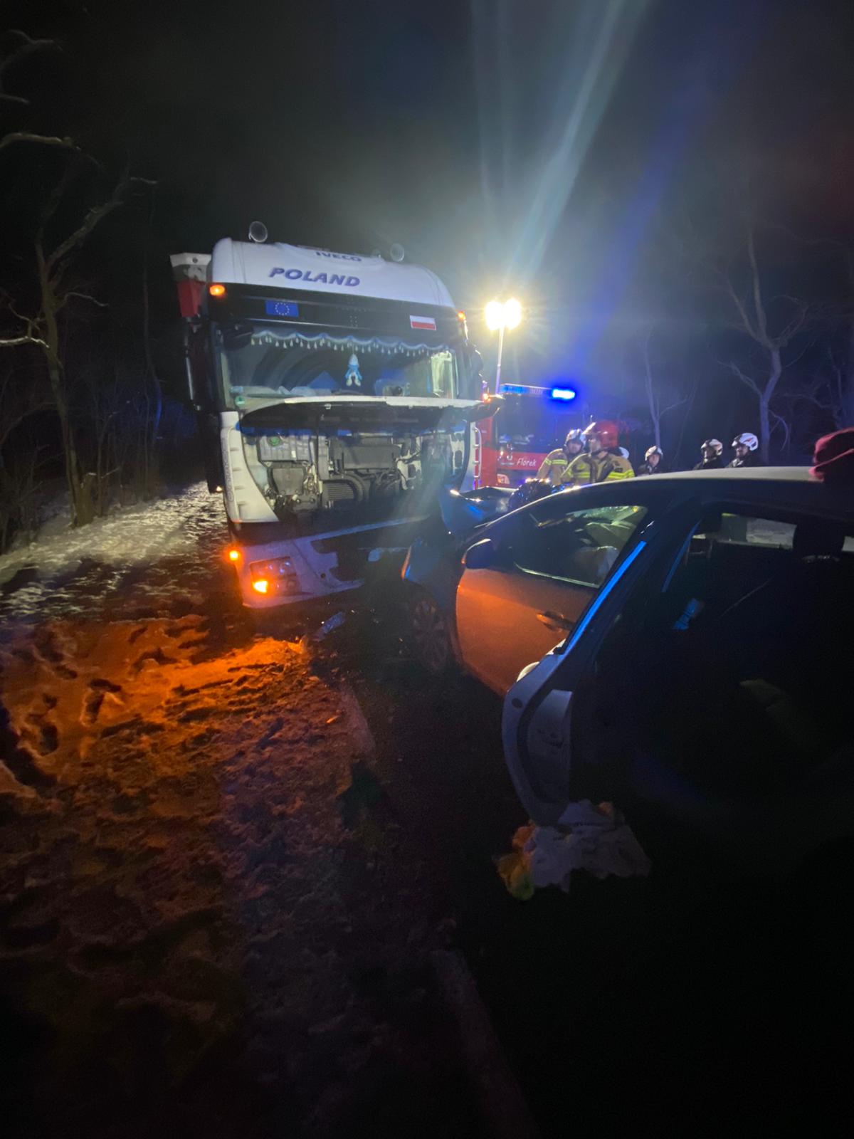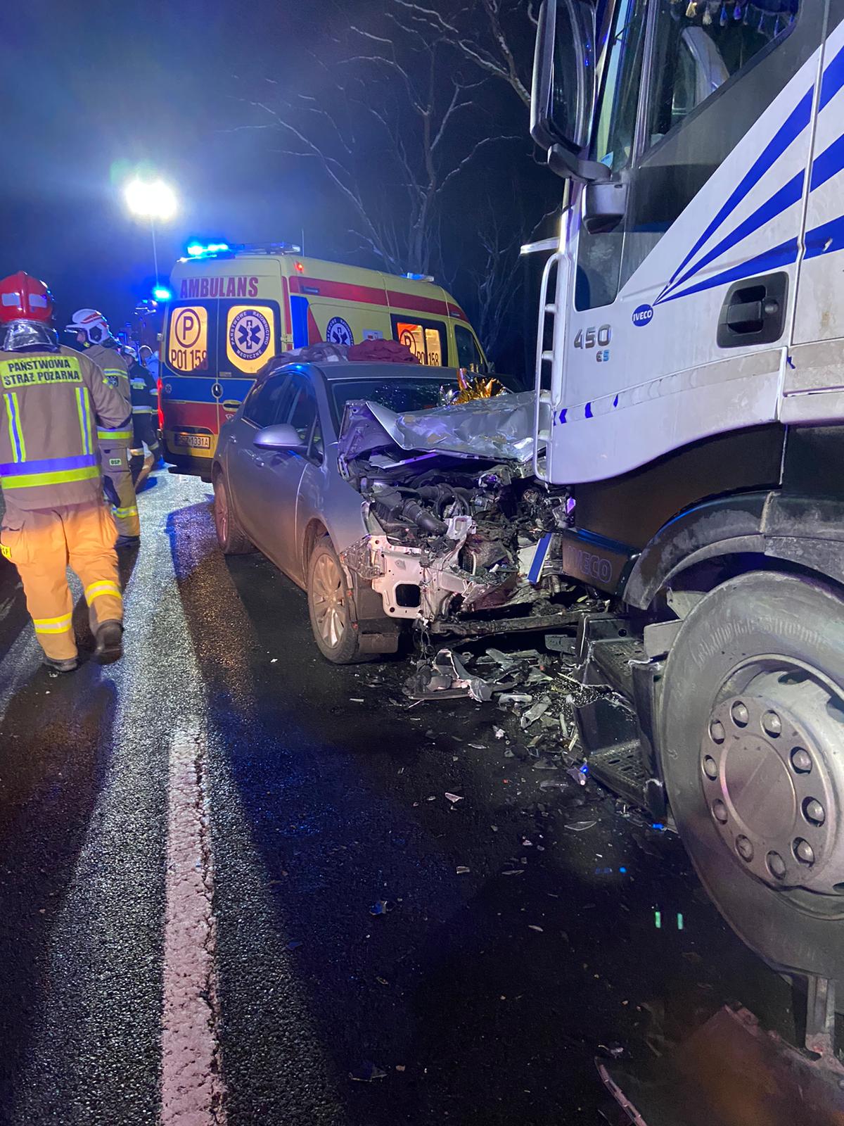W piątek, 8 grudnia o godz. 17.40 do dyżurnego Stanowiska Kierowania Państwowej Straży Pożarnej w Szamotułach wpłynęło zgłoszenie z Centrum Powiadamiania Ratunkowego, które informowało o zderzeniu czołowym samochodu osobowego z pojazdem ciężarowym oraz jednej osobie poszkodowanej na drodze wojewódzkiej nr 182 na trasie Piotrowo - Wronki.