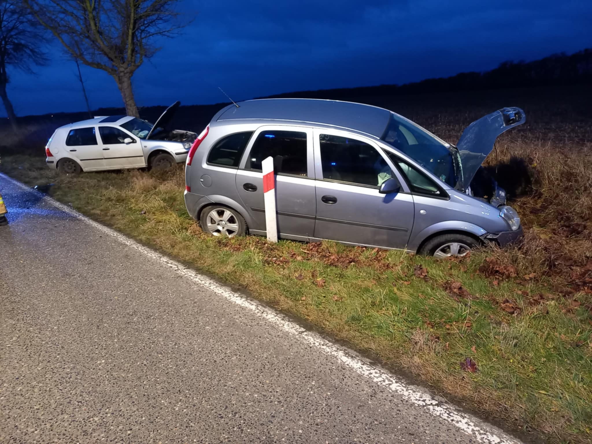 Po dojeździe na miejsce zdarzenia strażacy zastali dwa samochody osobowe, które zderzyły się ze sobą.