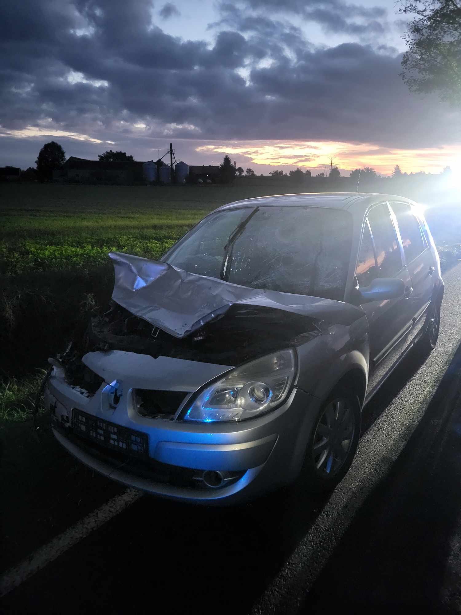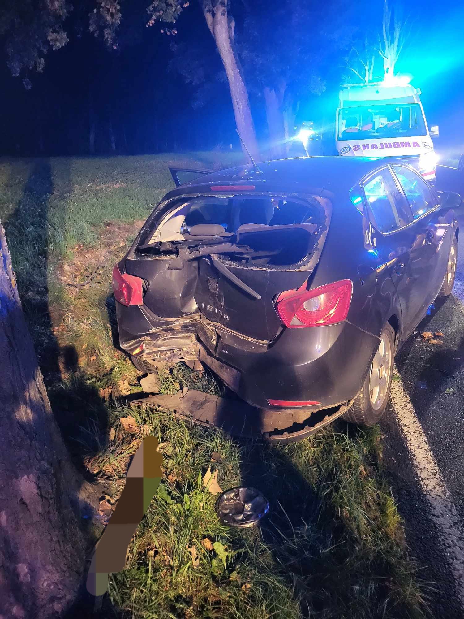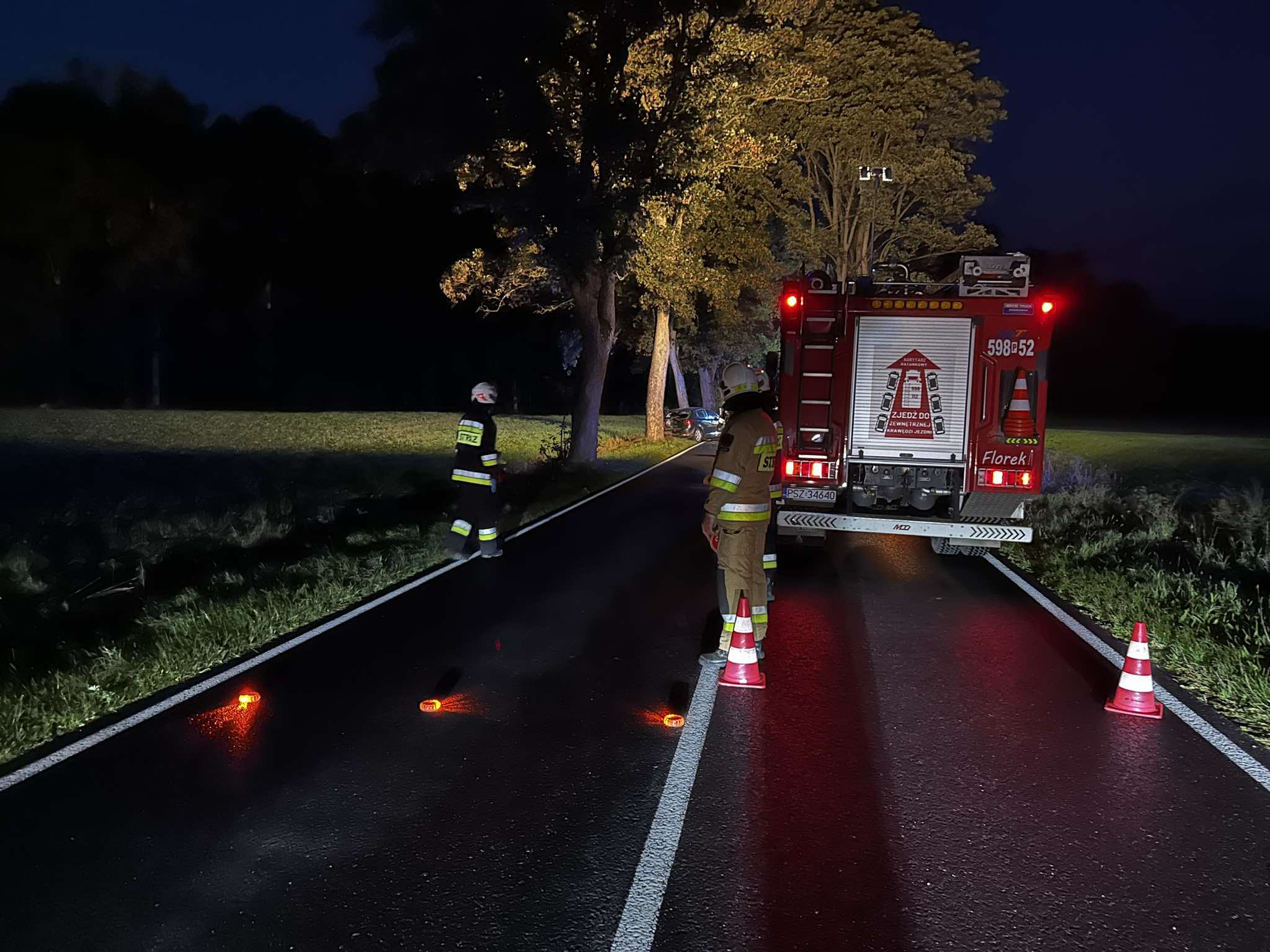 Po dojeździe na miejsce zdarzenia strażacy zastali samochód osobowy marki Seat, który uderzył w drzewo i znajdował się w rowie, natomiast drugi pojazd Renault uderzył w zwierzę i znajdował się na pasie drogi. Kierujący i pasażerowie opuścili pojazdy przed przybyciem SP i znajdowali się w pobliżu. Dwie osoby lekko poszkodowane, pozostałe dwie osoby nie odniosły obrażeń. Droga wojewódzka nr 182 została zablokowana.