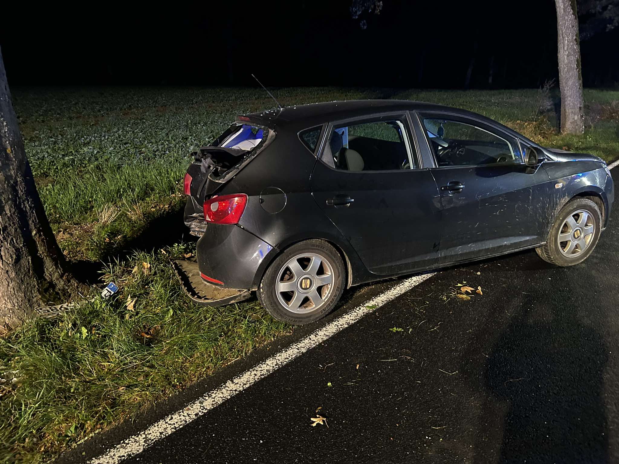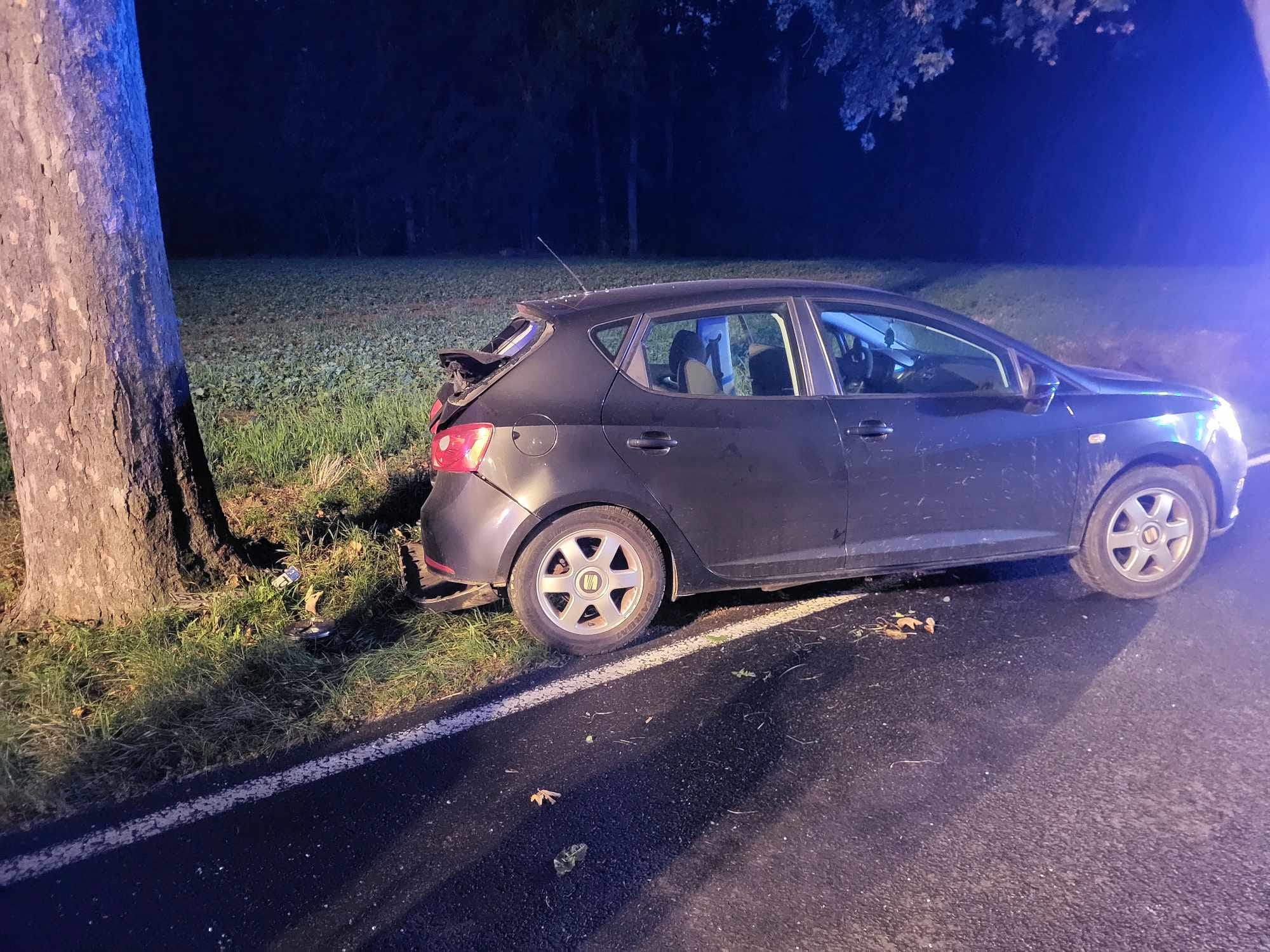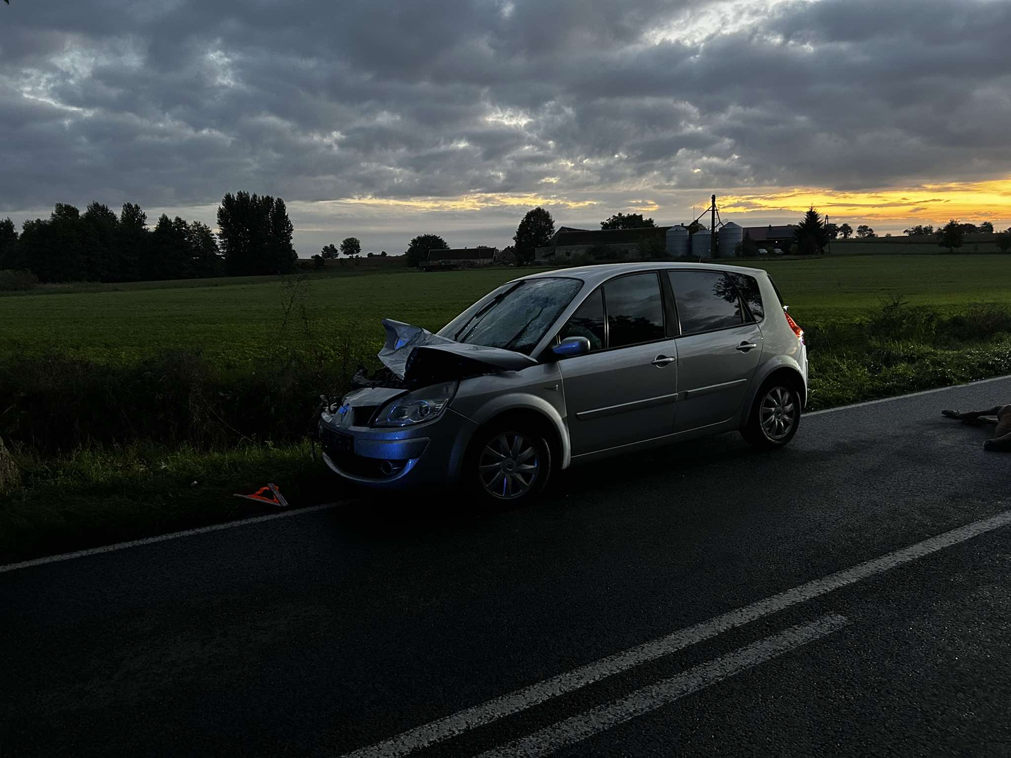 Po dojeździe na miejsce zdarzenia strażacy zastali samochód osobowy marki Seat, który uderzył w drzewo i znajdował się w rowie, natomiast drugi pojazd Renault uderzył w zwierzę i znajdował się na pasie drogi. Kierujący i pasażerowie opuścili pojazdy przed przybyciem SP i znajdowali się w pobliżu. Dwie osoby lekko poszkodowane, pozostałe dwie osoby nie odniosły obrażeń. Droga wojewódzka nr 182 została zablokowana.