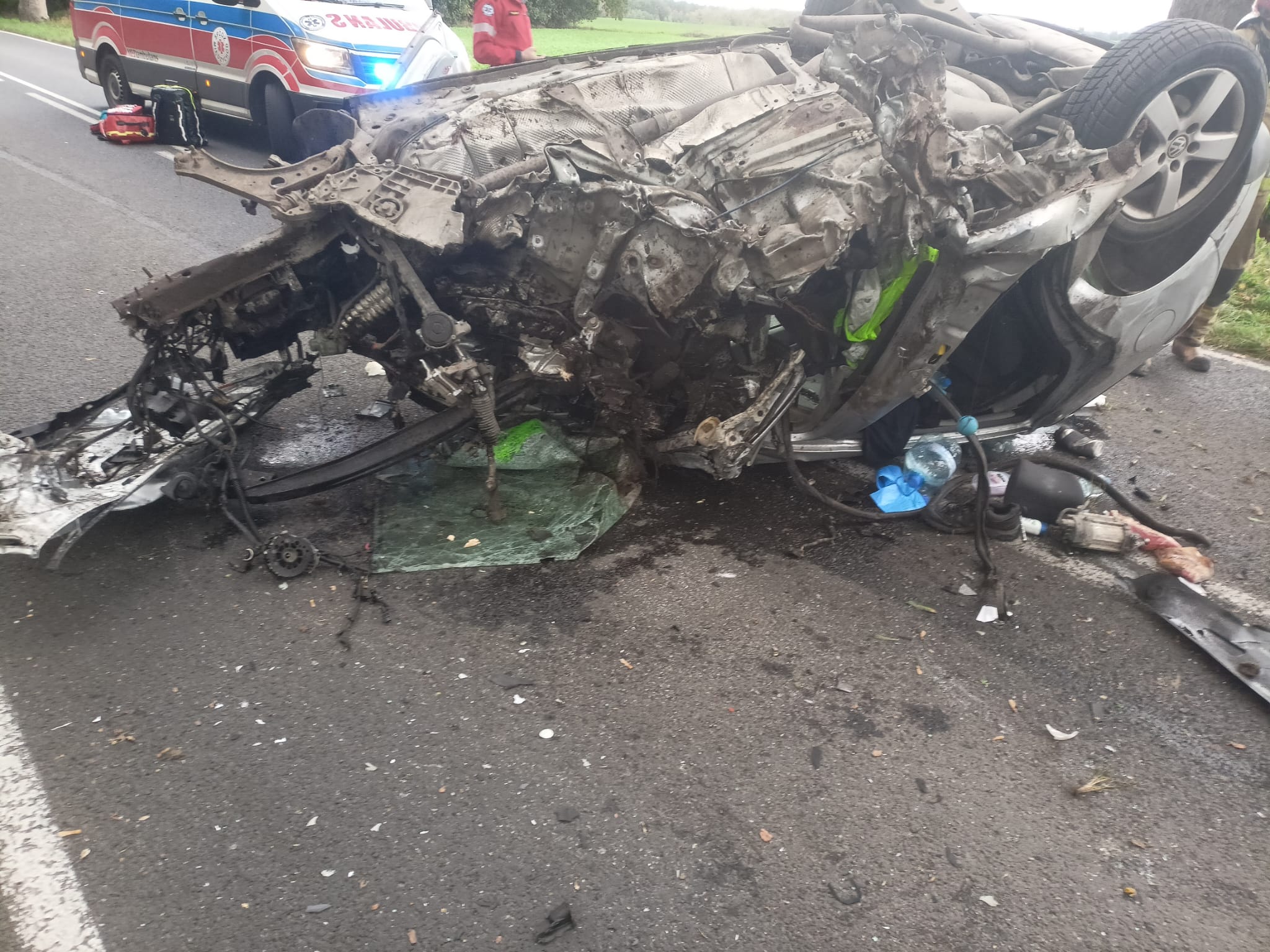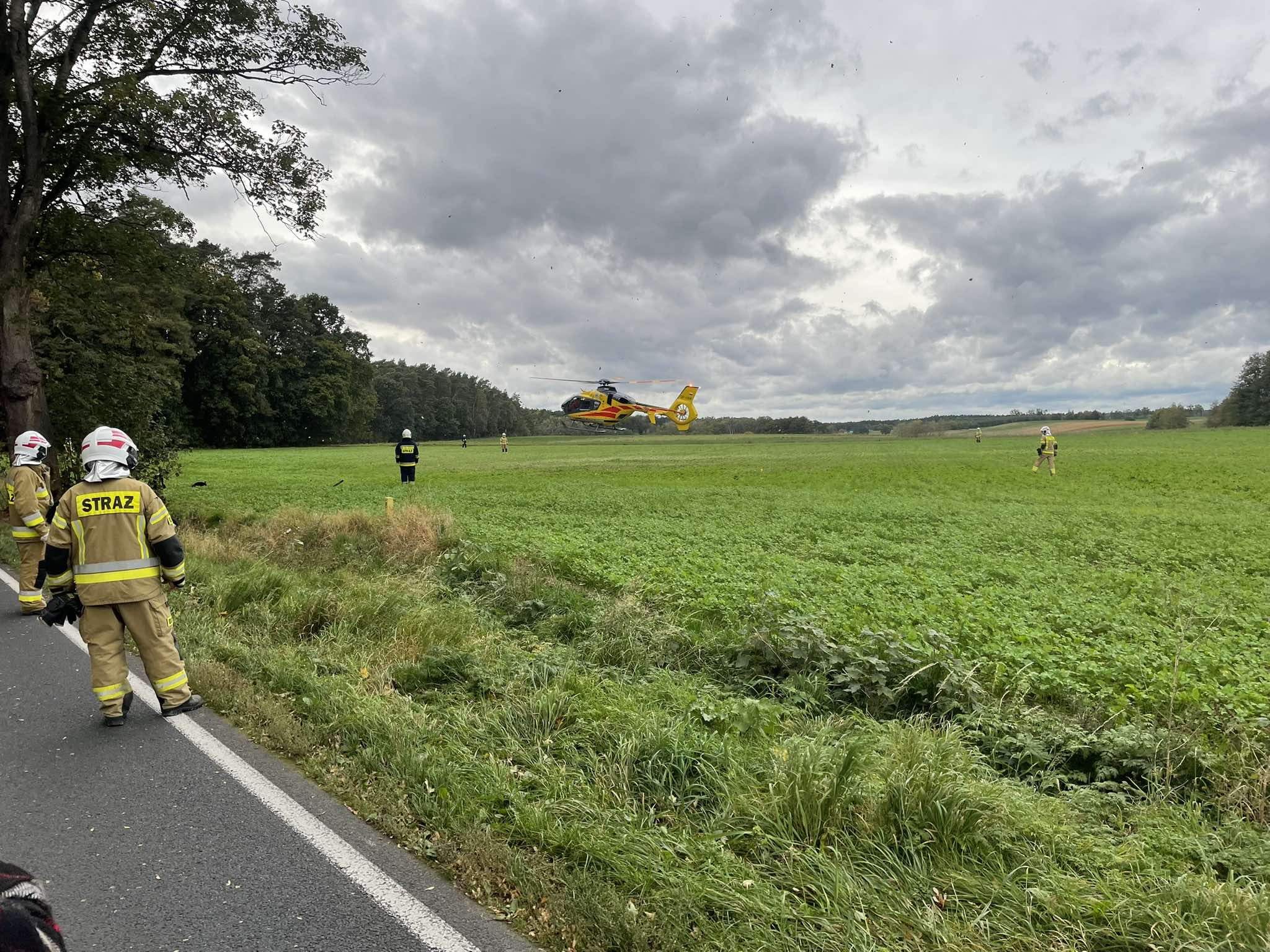 Wypadek drogowy na trasie Wronki-Sieraków, jedna osoba przetransportowana śmigłowcem do szpitala