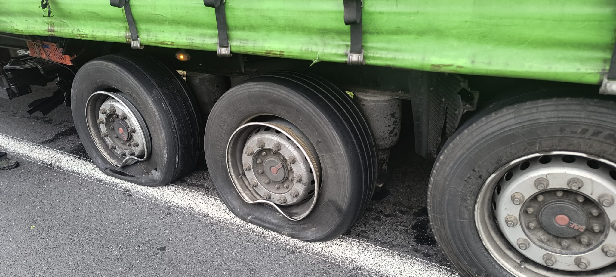 Po dojeździe na miejsce zdarzenia strażacy zastali dwa samochody osobowe oraz pojazd ciężarowy, które zderzyły się ze sobą. Kierujący i pasażer opuścili pojazdy przed przybyciem SP i znajdowali się w pobliżu, jedna osoba (mężczyzna) został lekko poszkodowany. Uszkodzona pojazdy po zderzeniu znajdowały się na drodze.