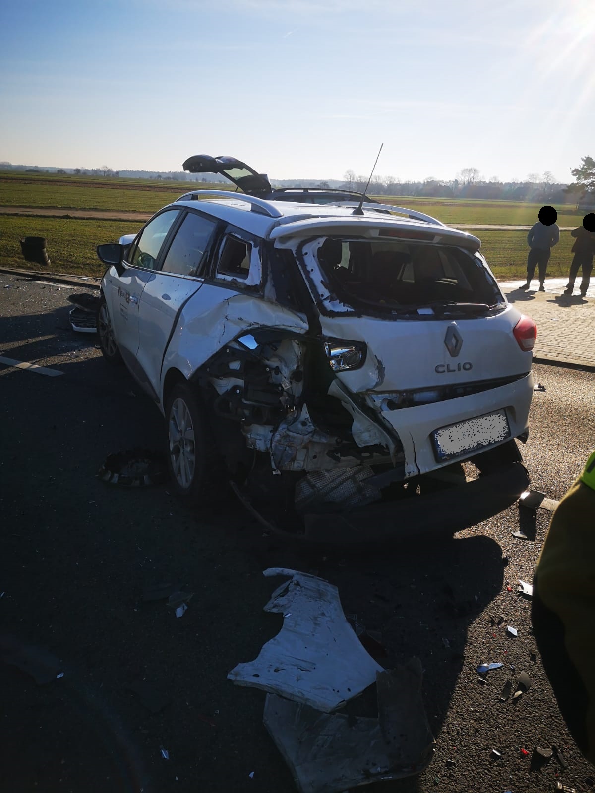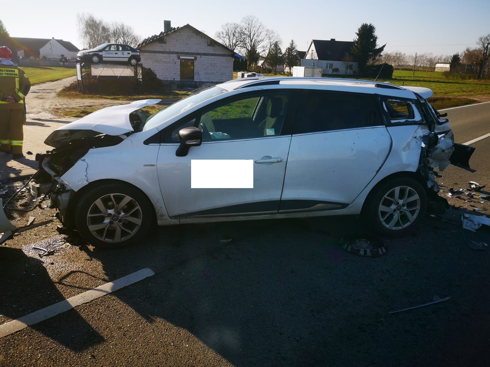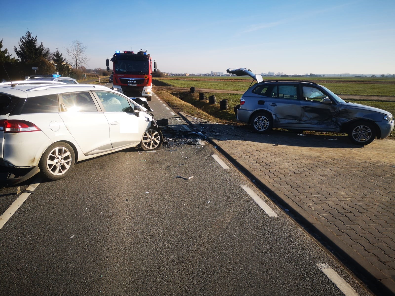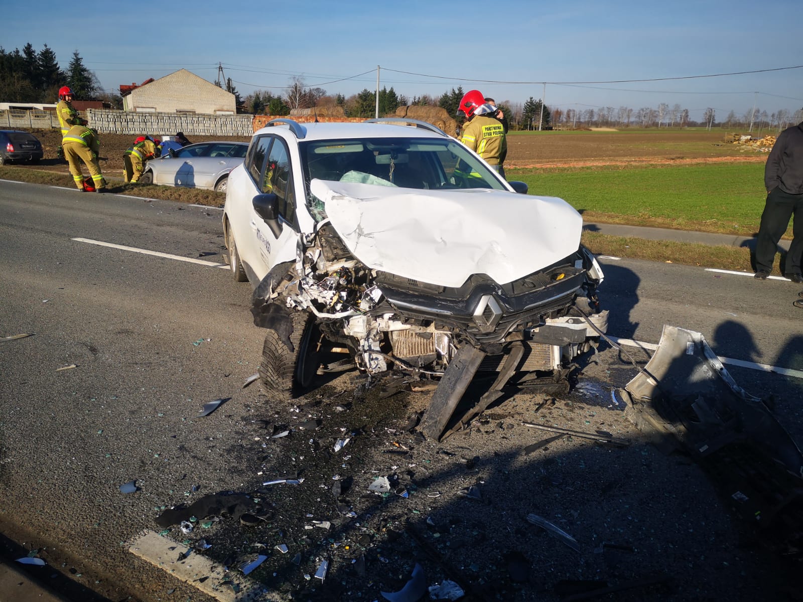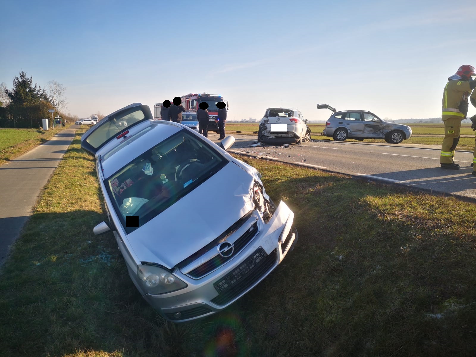 Po dojeździe na miejsce zdarzenia strażacy zastali trzy samochody osobowe, które zderzyły się ze sobą. Kierujący opuścili pojazdy przed przybyciem SP i znajdowali się w pobliżu. Jeden samochód znajdował się na środku drogi, drugi w przydrożnym rowie, natomiast trzeci pojazd na wjeździe do pobliskiej posesji.