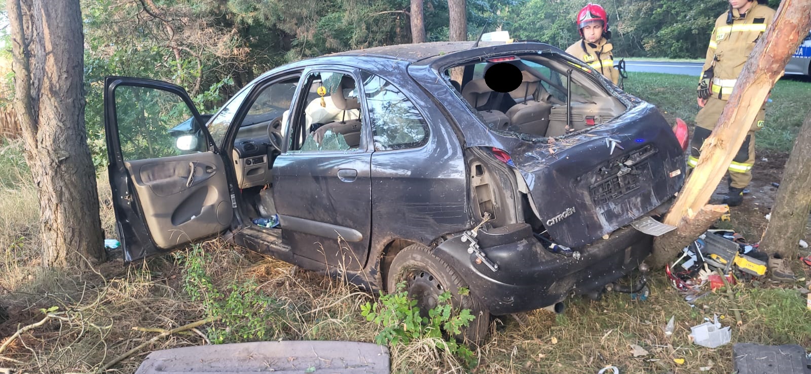 Po dojeździe na miejsce zdarzenia strażacy zastali samochód osobowy, który znajdował się w przydrożnym rowie. Kierujący i pasażerowie opuścili pojazd przed przybyciem SP i znajdowali się w pobliżu.