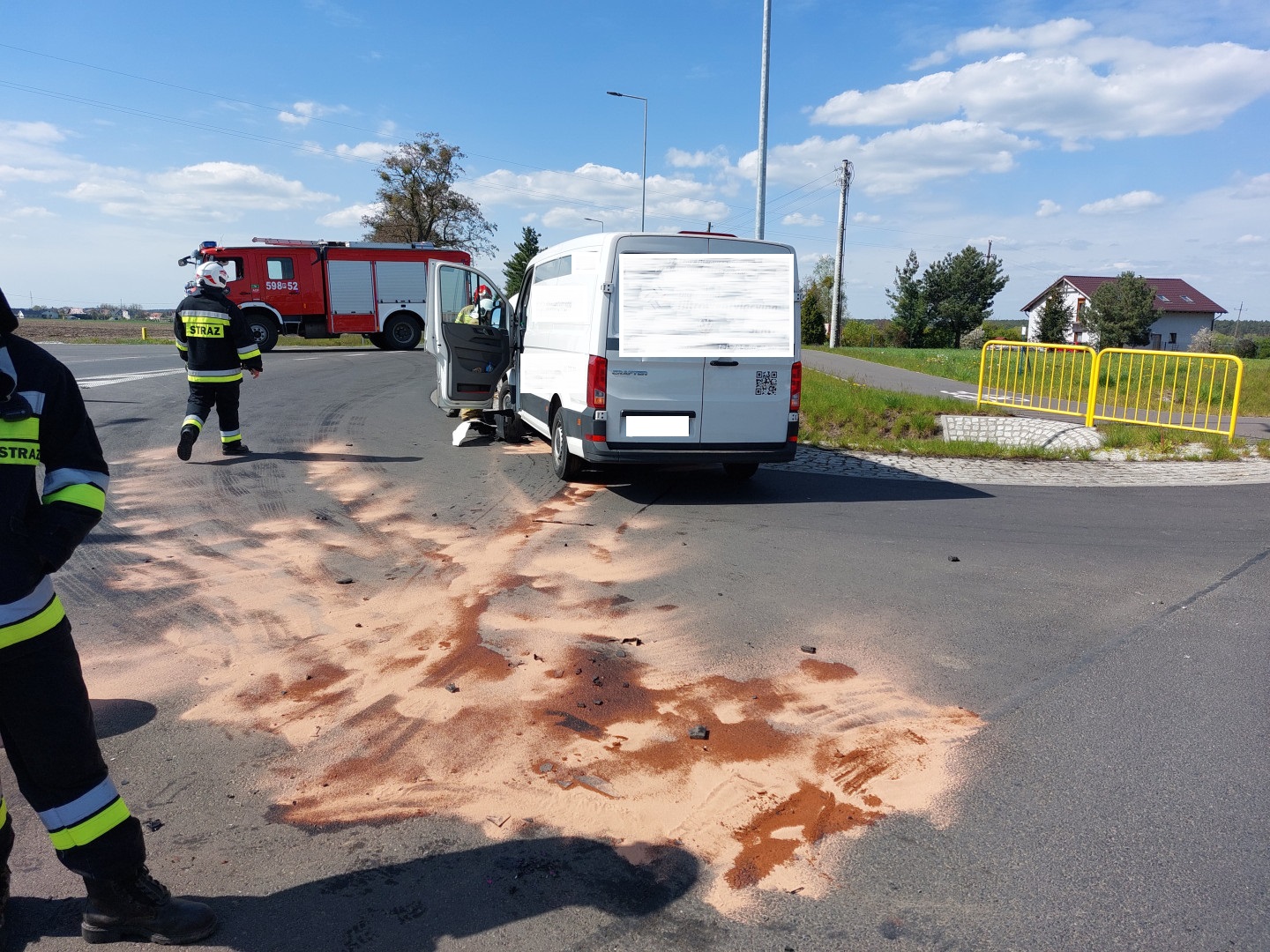 Działania SP polegały na zabezpieczeniu miejsca zdarzenia, rozłączeniu akumulatorów w uszkodzonych pojazdach, udzieleniu kwalifikowanej pierwszej pomocy osobie poszkodowanej, pomocy Policji w kierowaniu ruchem drogowym, przemieszczeniu pojazdów na pobocze drogi oraz posprzątaniu drogi z pozostałości po wypadku.
