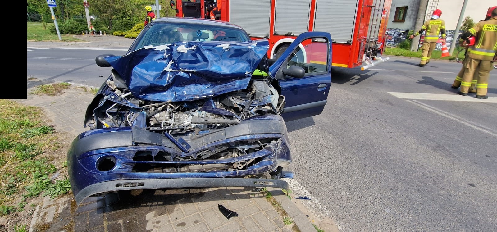 Po dojeździe na miejsce zdarzenia strażacy zastali dwa samochody osobowe, które zderzyły się ze sobą. Kierujący opuścili pojazdy przed przybyciem SP i znajdowali się w pobliżu pod opieką świadków zdarzenia.