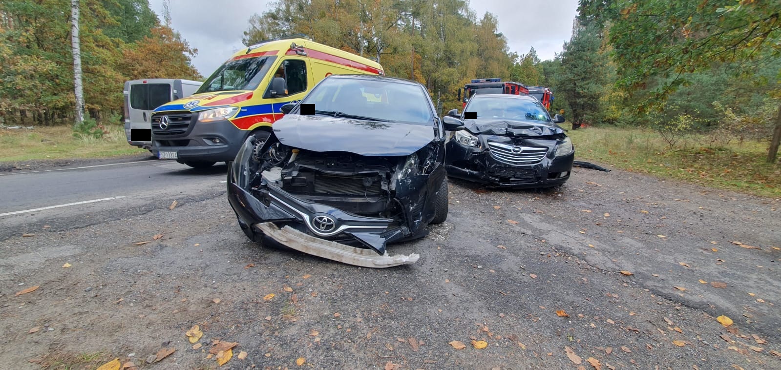 Dwie osoby poszkodowane (kobieta i mężczyzn) po przebadaniu przez ratowników ZRM zostały przewiezione do szpitala.