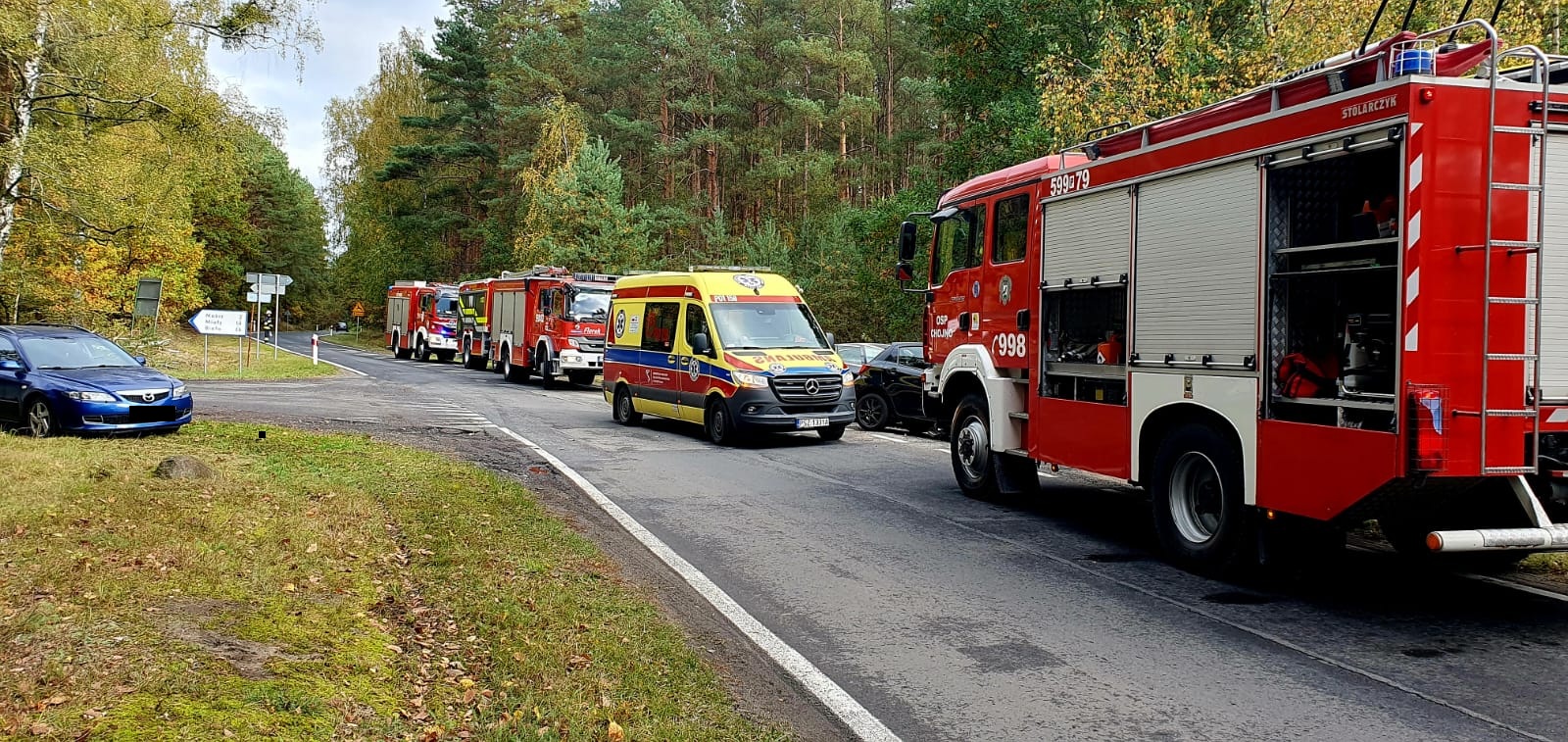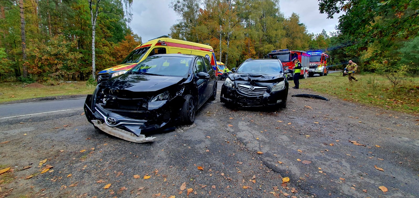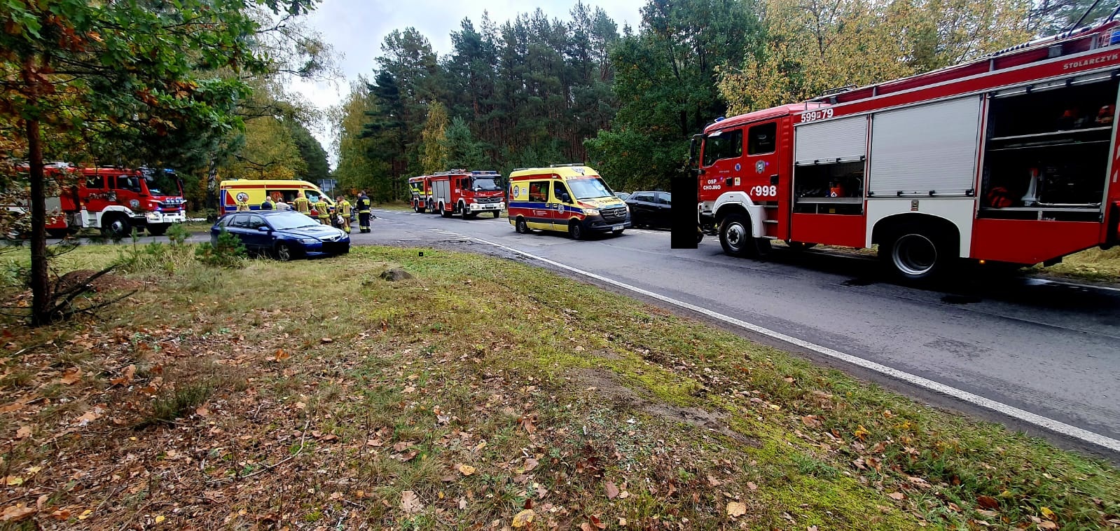 W środę, 15 października 2025 roku o godz. 13.59 do dyżurnego Stanowiska Kierowania Państwowej Straży Pożarnej w Szamotułach wpłynęło zgłoszenie z Centrum Powiadamiania Ratunkowego, które informowało o wypadku drogowym z udziałem dwóch samochodów oraz dwóch osobach poszkodowanych na trasie Wronki-Chojno.