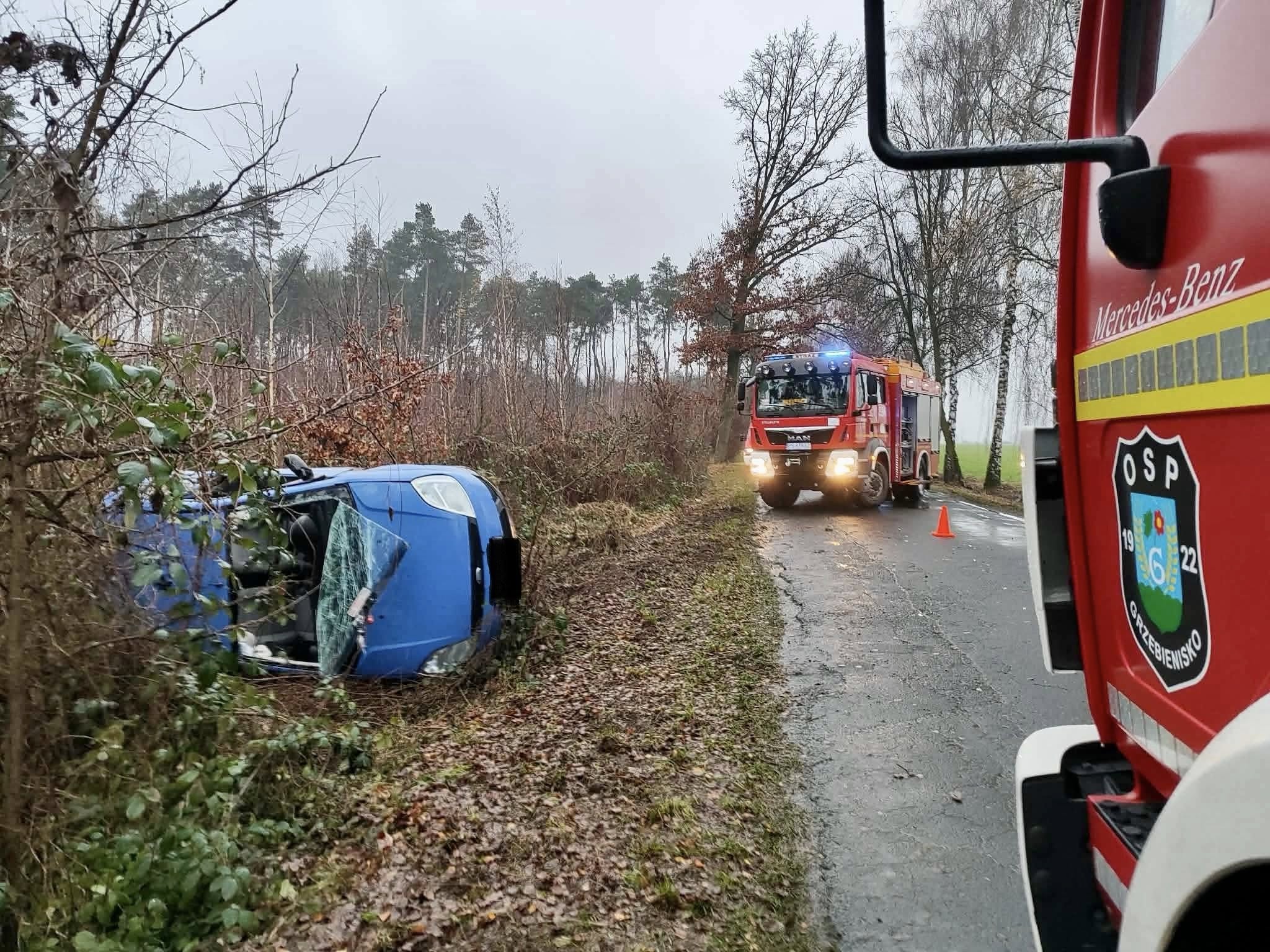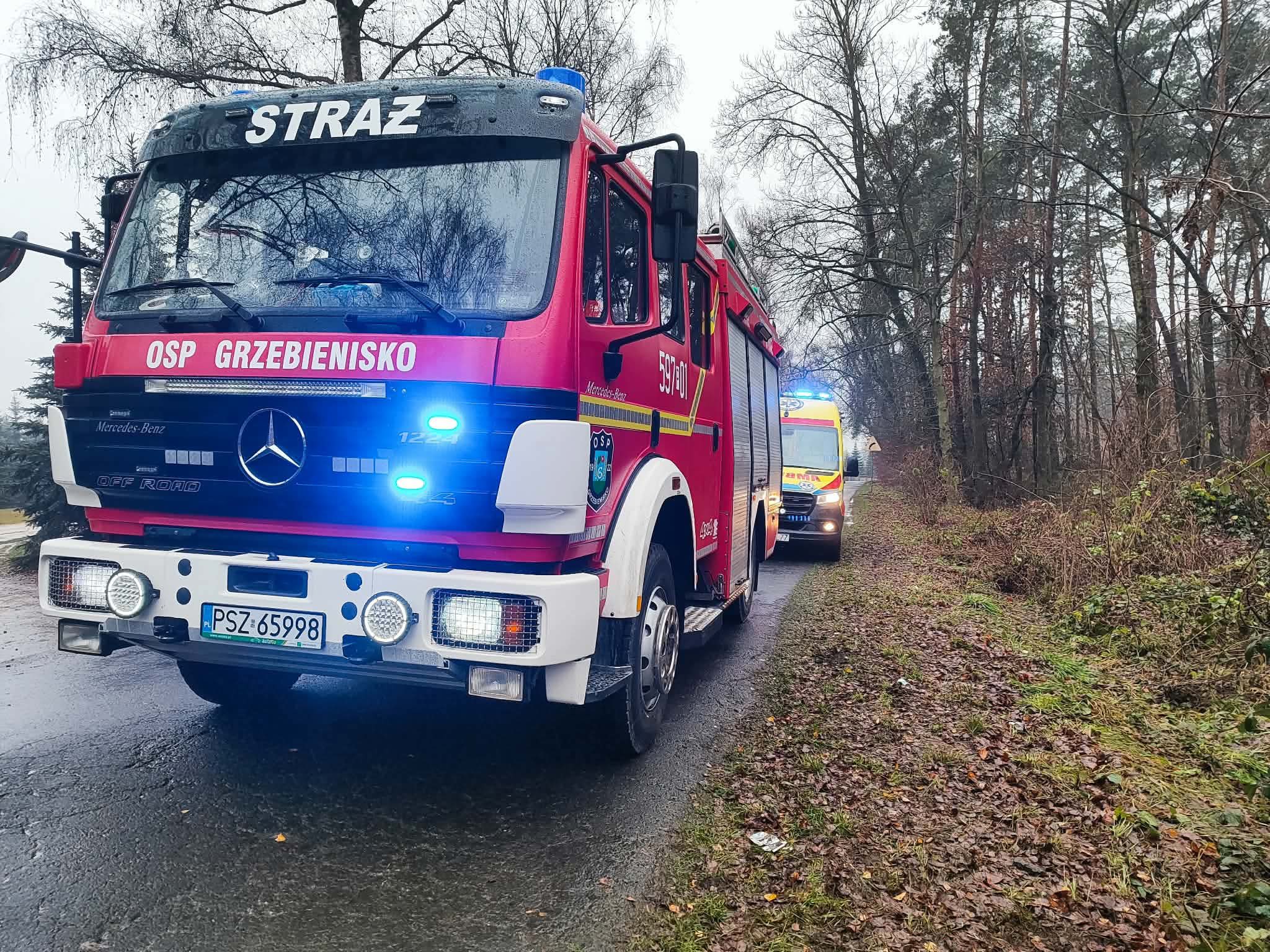 W piątek, 5 grudnia 2025 roku o godz. 9.01 do dyżurnego Stanowiska Kierowania Państwowej Straży Pożarnej w Szamotułach wpłynęło zgłoszenie z Centrum Powiadamiania Ratunkowego, które informowało o wypadku drogowym oraz jednej osobie poszkodowanej na drodze powiatowej Gaj Wielki-Grzebienisko.