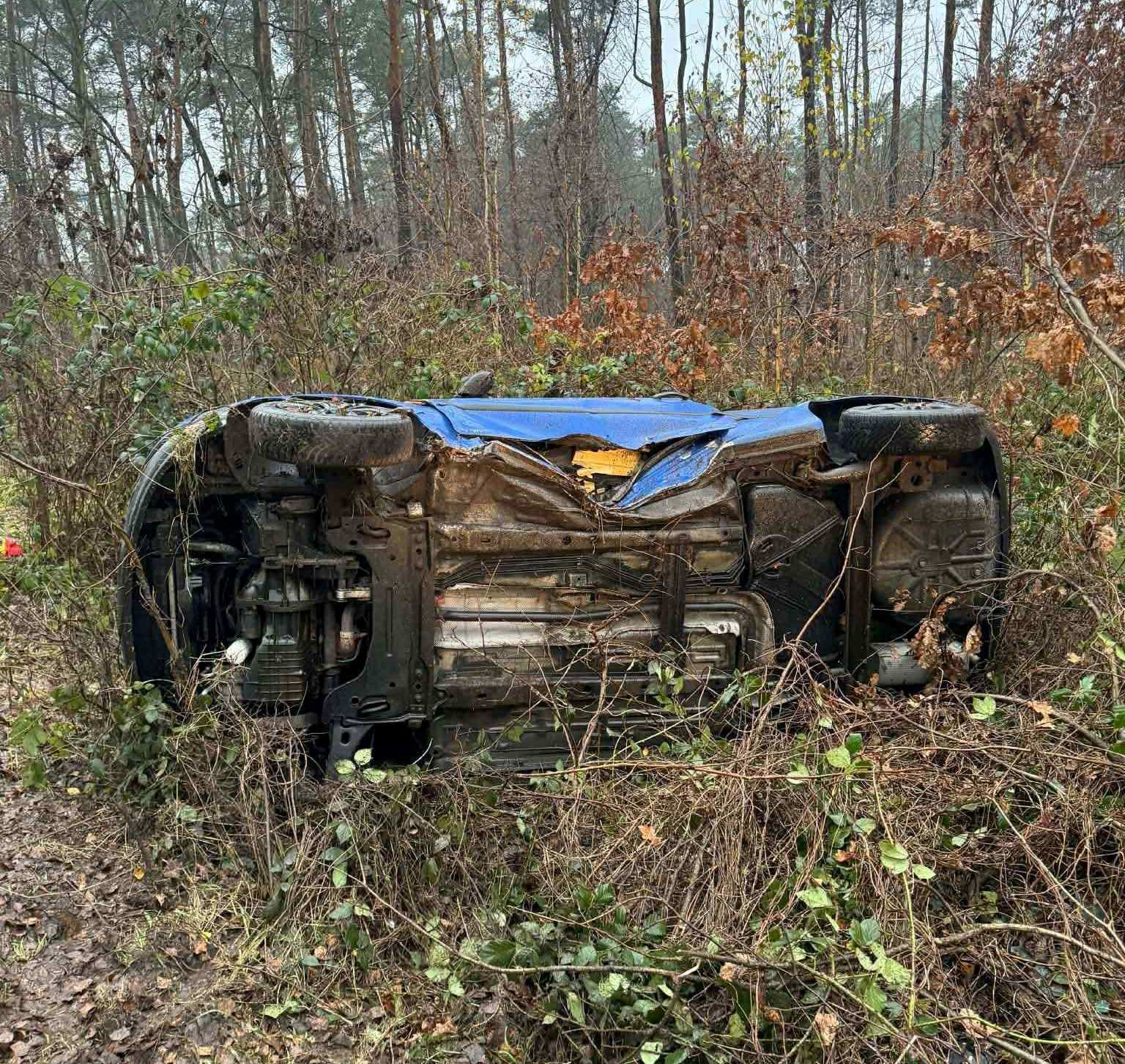 Po dojeździe na miejscu zdarzenia strażacy zastali samochód osobowy, który znajdowała się na prawym boku w rowie. Kierująca znajdowała się wewnątrz pojazdu.