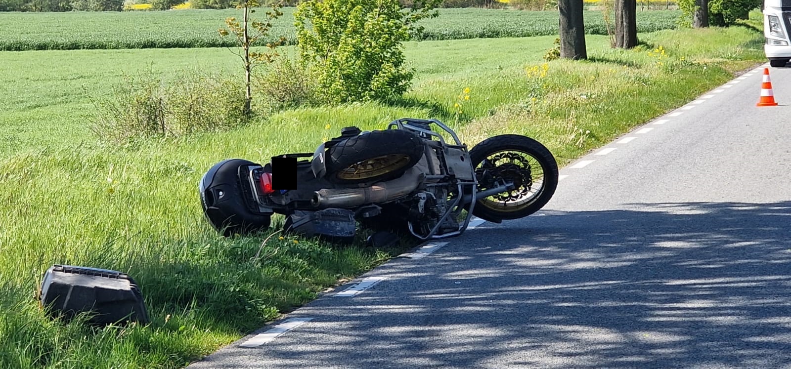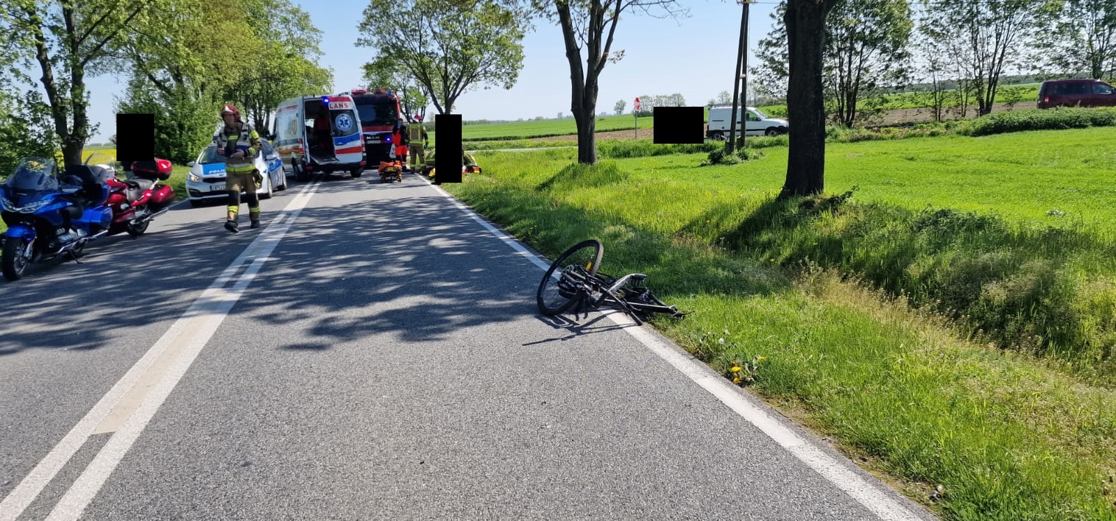 WYPADEK Z UDZIAŁEM MOTOCYKLA I ROWERU, DWIE OSOBY POSZKODOWANE