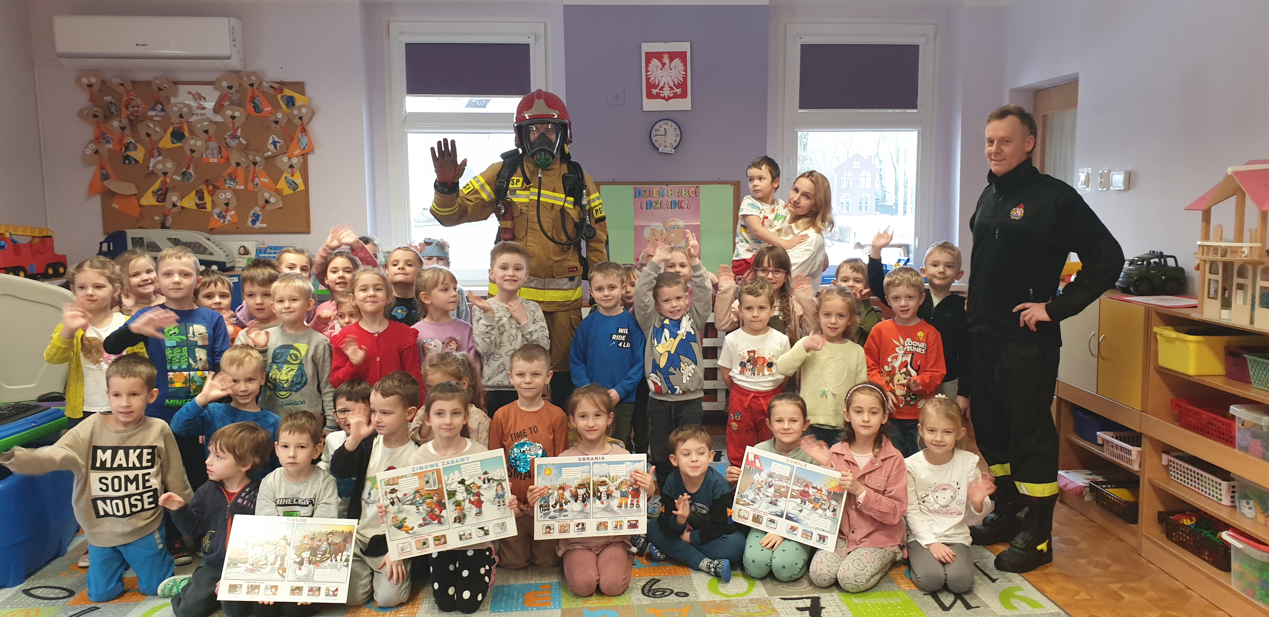 Ponadto maluchy uczyły się jak wzywać pomoc z wykorzystaniem numer alarmowego „112” i jak reagować gdy występuje zagrożenie dla życia lub mienia.