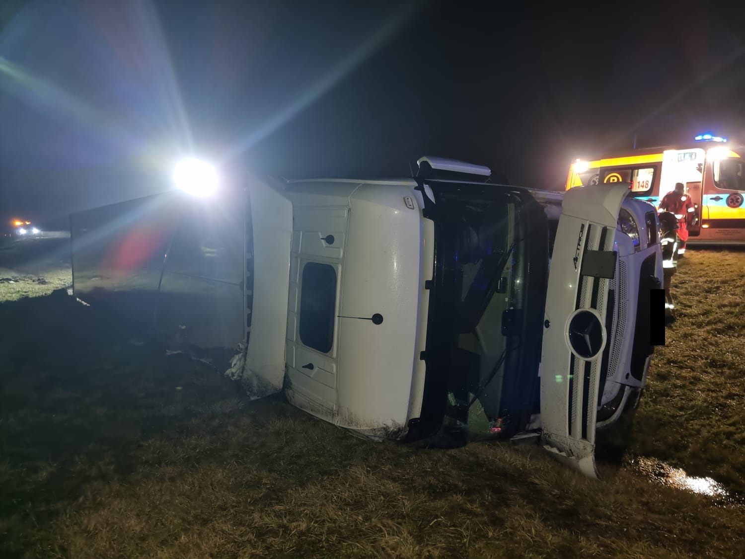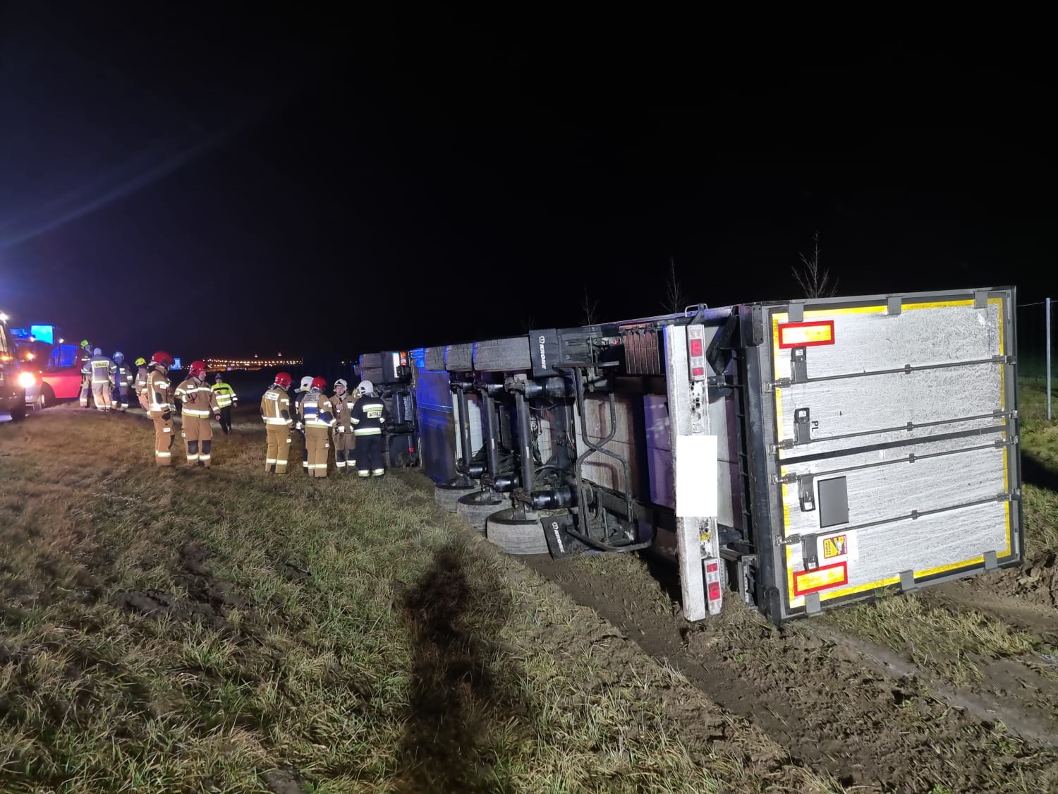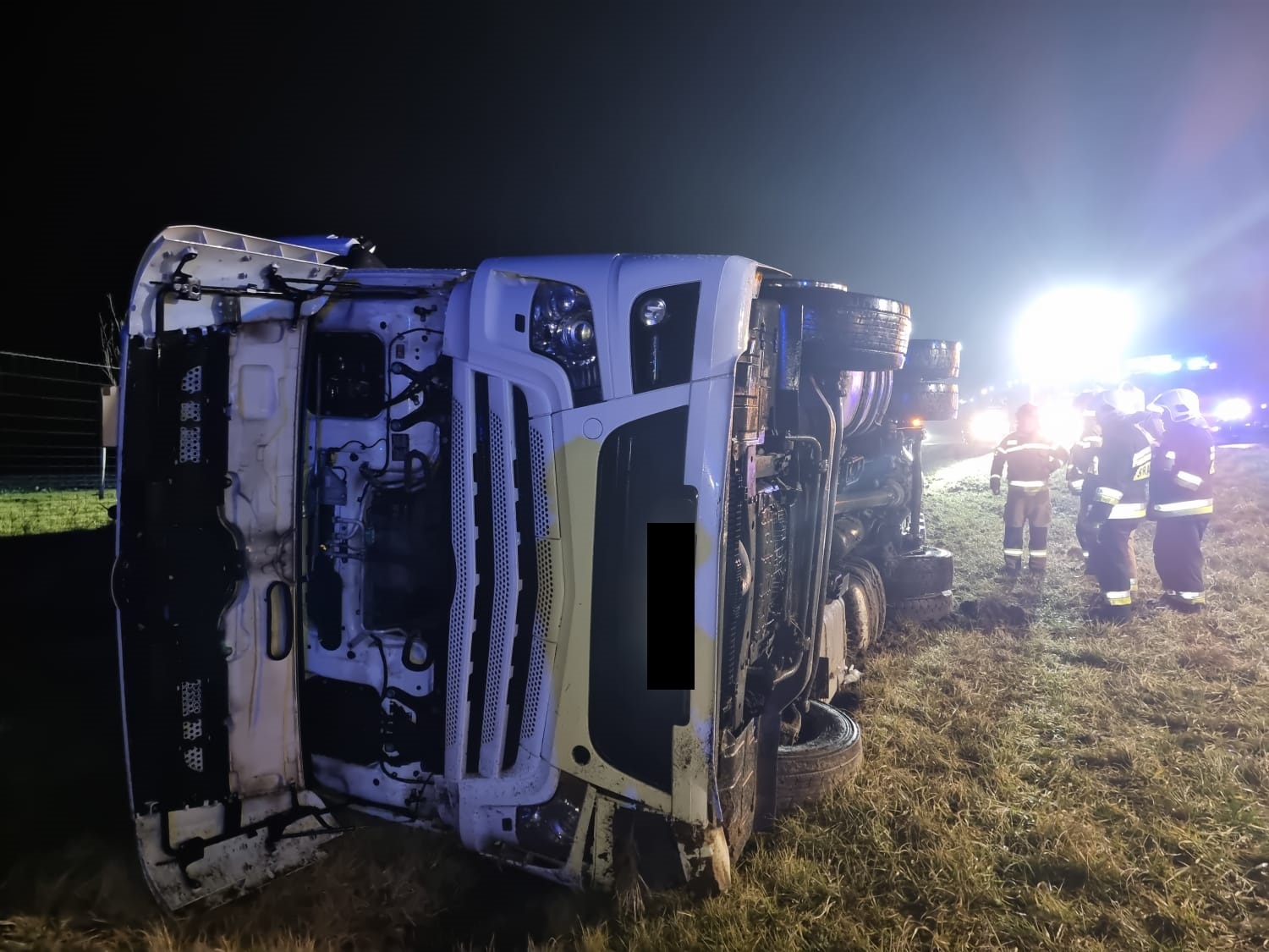 W sobotę, 5 lutego o godz. 00.57 do dyżurnego Stanowiska Kierowania Państwowej Straży Pożarnej w Szamotułach wpłynęło zgłoszenie z Centrum Powiadamiania Ratunkowego, które informowało o przewróconym samochodzie ciężarowym znajdującym się poza drogą oraz jednej osobie poszkodowanej na 135 km autostrady nr 2 w kierunku Świecka na wysokości miejscowości Zalesie.