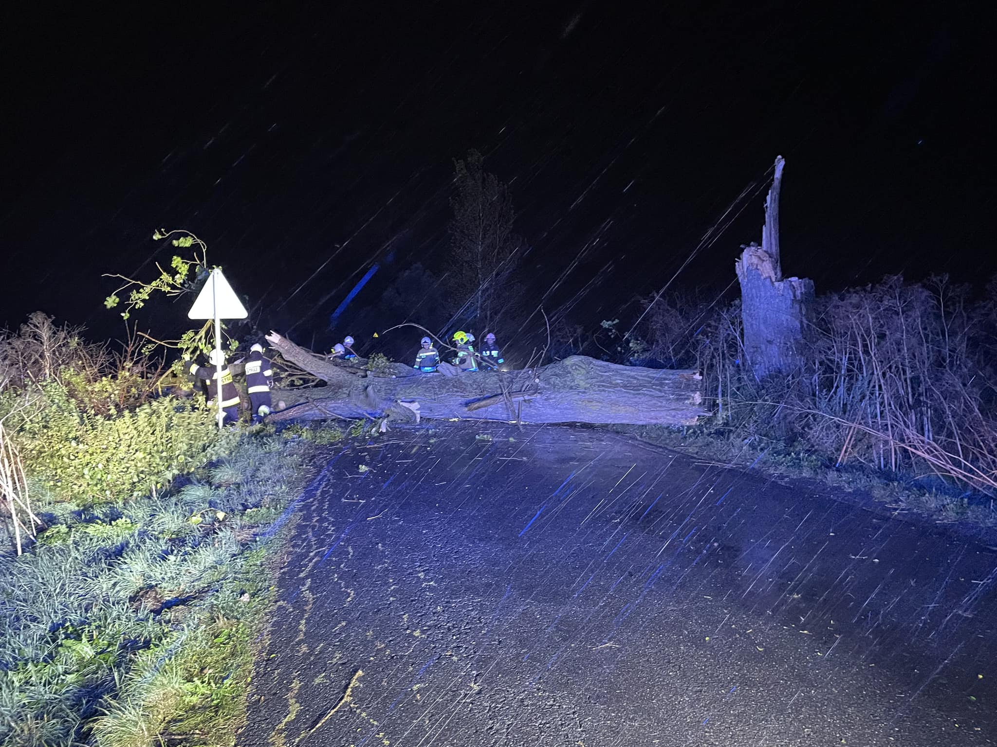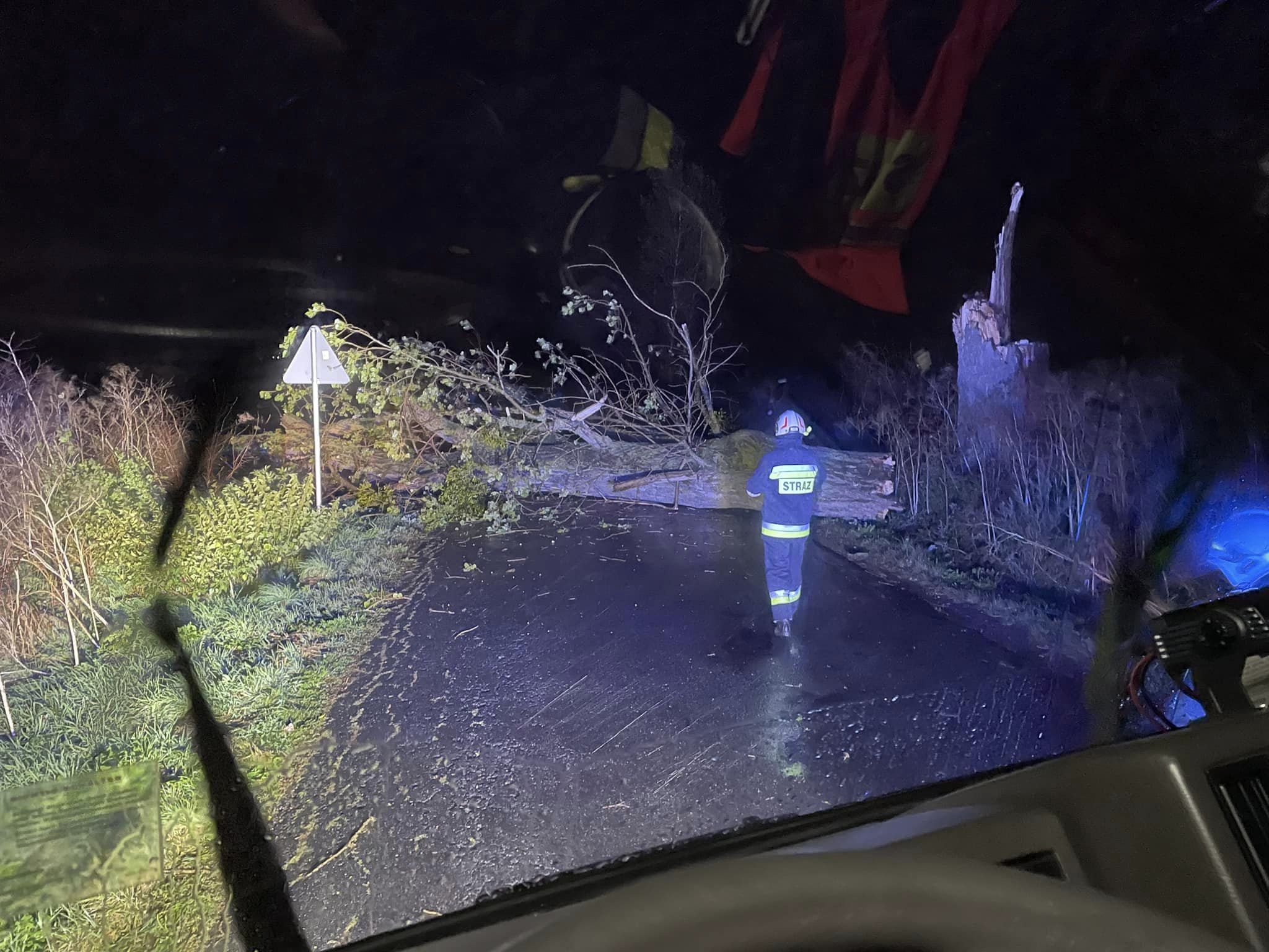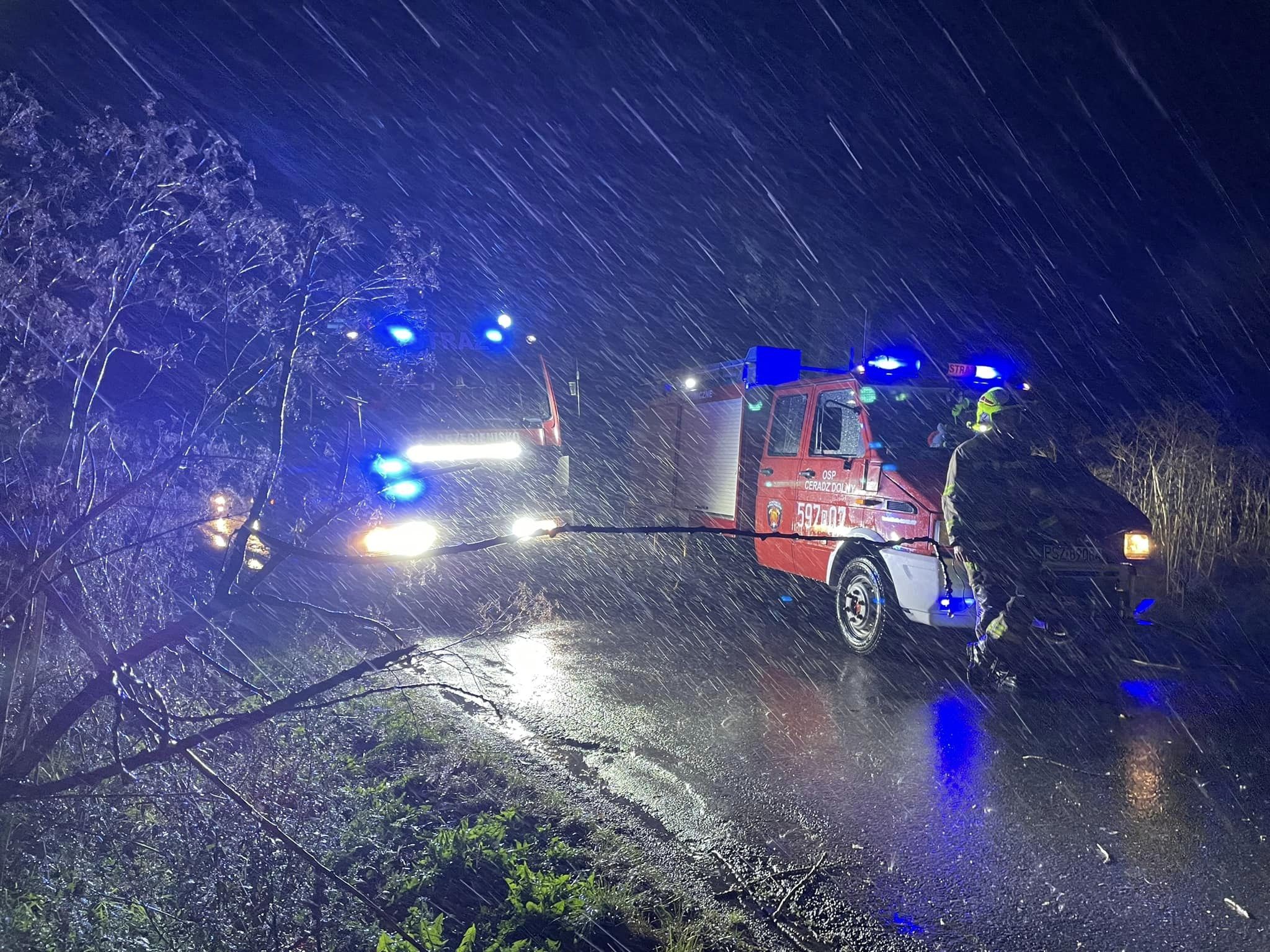 Strażacy walczyli ze skutkami silnego wiatru przez kilka godzin, wykorzystując cały dostępny sprzęt, interweniowali łącznie przy 32 zdarzeniach związanych z silnym wiatrem oraz gwałtownymi opadami deszczu.