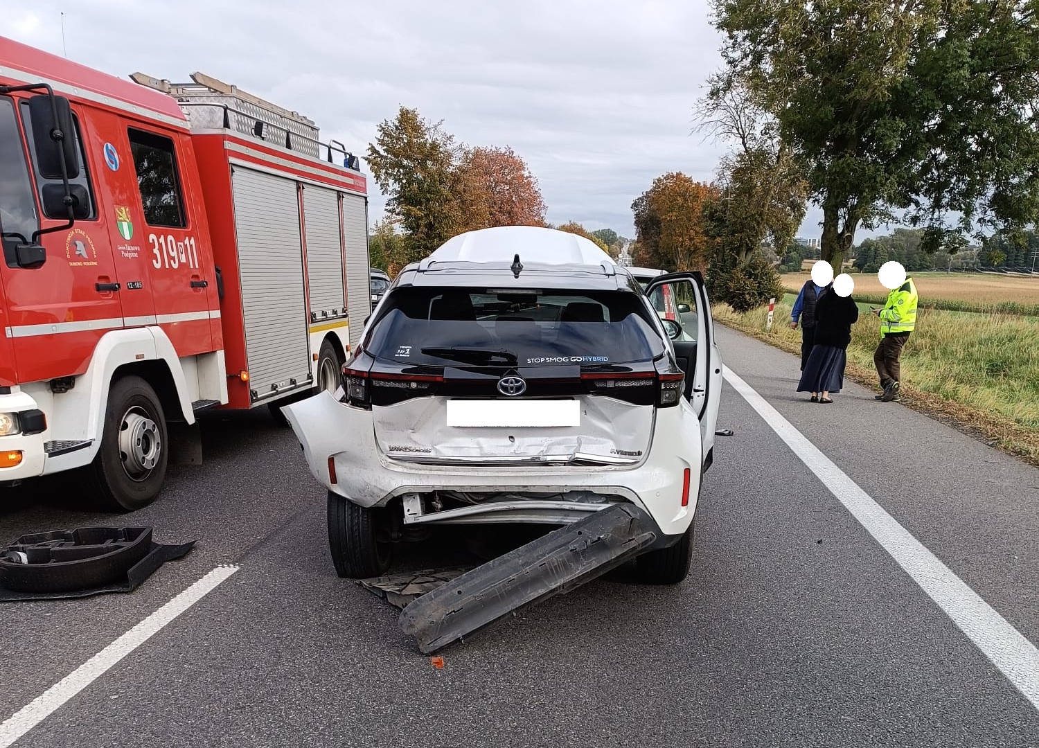 Oprócz jednego zastępu z Jednostki Ratowniczo-Gaśniczej w Szamotułach do zdarzenia wyjechały także pojazdy OSP Bytyń, OSP Kaźmierz, OSP Chlewiska, OSP Tarnowo Podgórne, Zespół Ratownictwa Medycznego oraz Policja.
