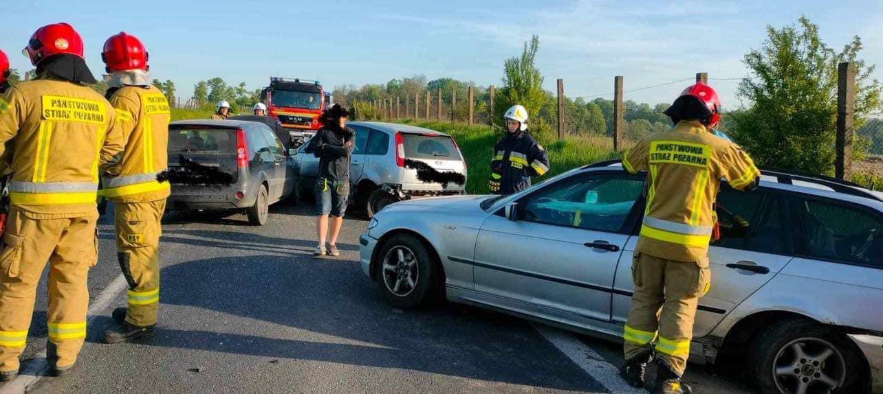 Po dojeździe na miejsce zdarzenia strażacy zastali cztery samochody osobowe, które zderzyły się ze sobą. Kierujący i pasażerowie opuścili pojazdy przed przybyciem SP i znajdowali się w pobliżu (dwie osoby lekko poszkodowane). Droga wojewódzka nr 184 była zablokowana.