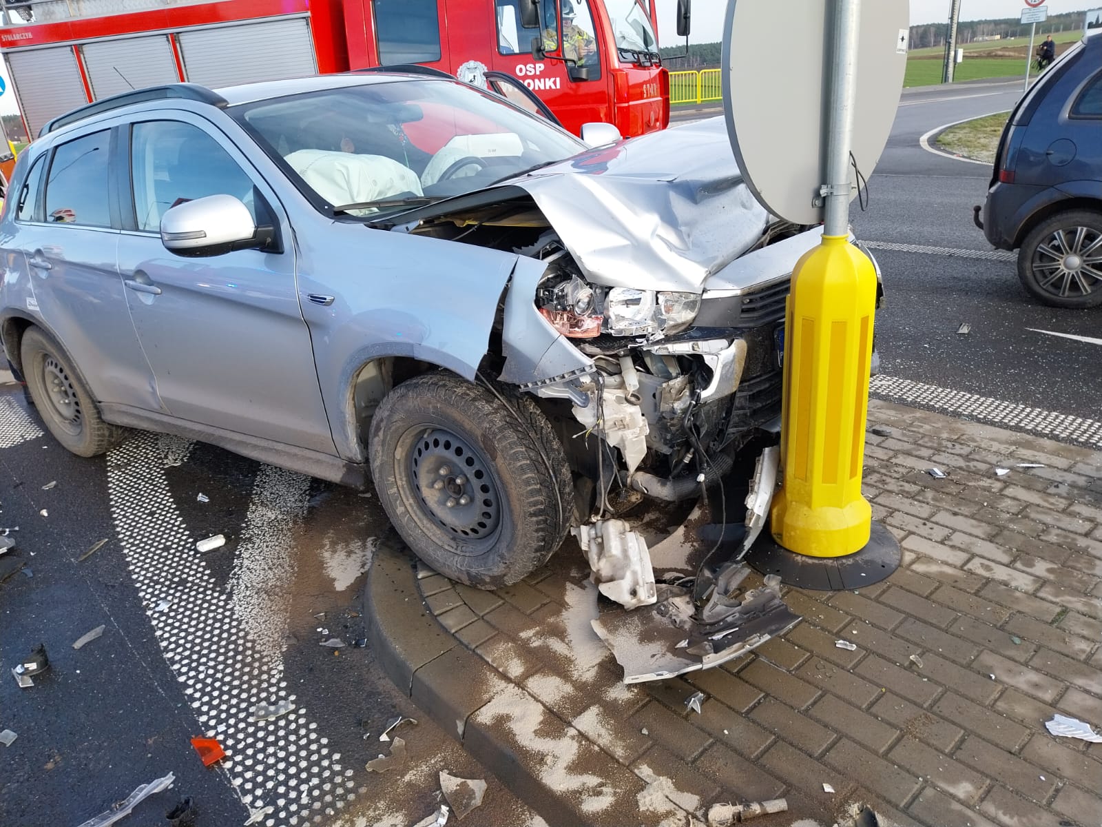 Działania SP polegały na zabezpieczeniu miejsca zdarzenia, udzieleniu kwalifikowanej pierwszej pomocy jednej osobie poszkodowanej, rozłączeniu akumulatorów w uszkodzonych pojazdach, pomocy Policji w kierowaniu ruchem drogowym oraz sorpcji płynów eksploatacyjnych.