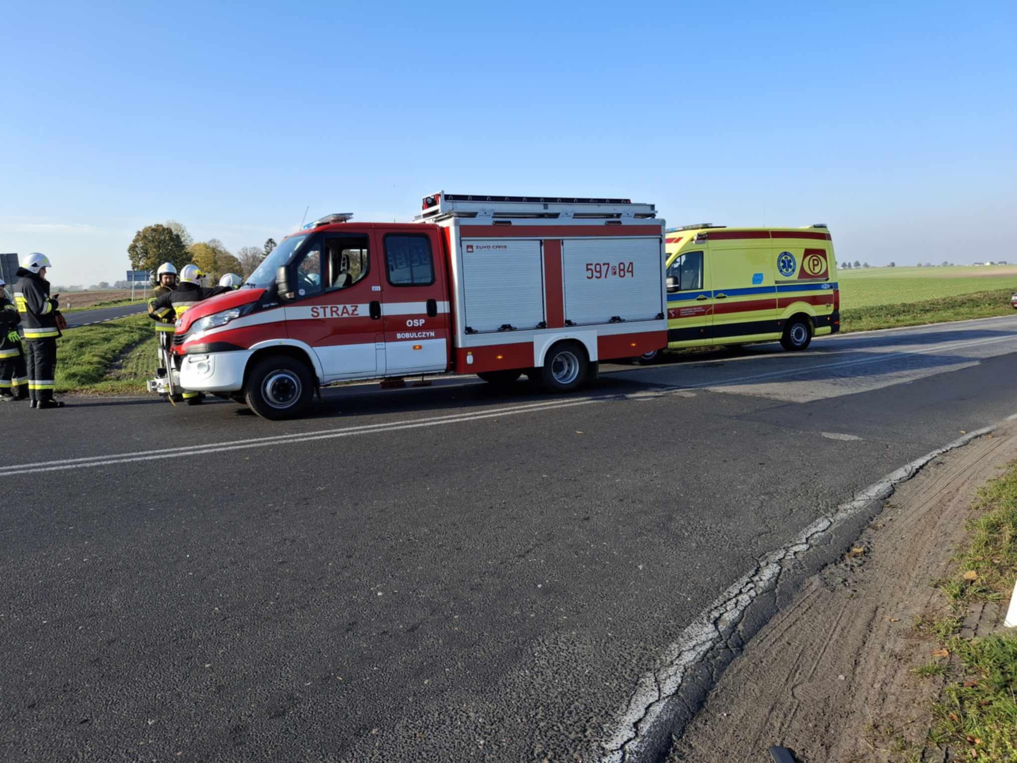 Zderzenie dwóch pojazdów w Bobulczynie, osoba poszkodowana przewieziona do szpitala