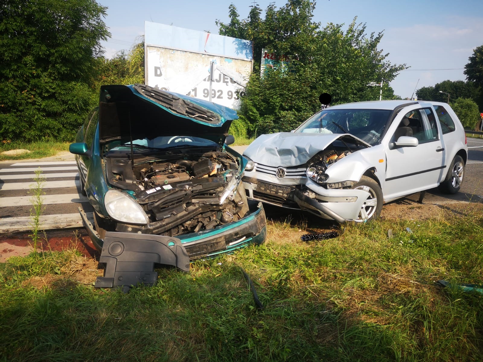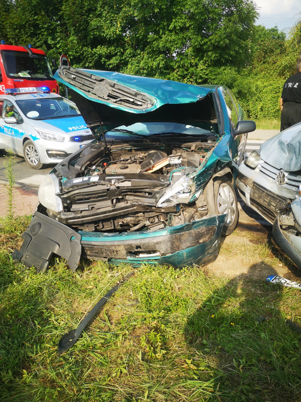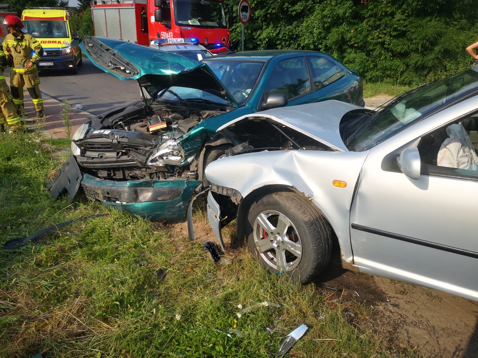 ZDERZENIE DWÓCH SAMOCHODÓW, JEDNA OSOBA POSZKODOWANA