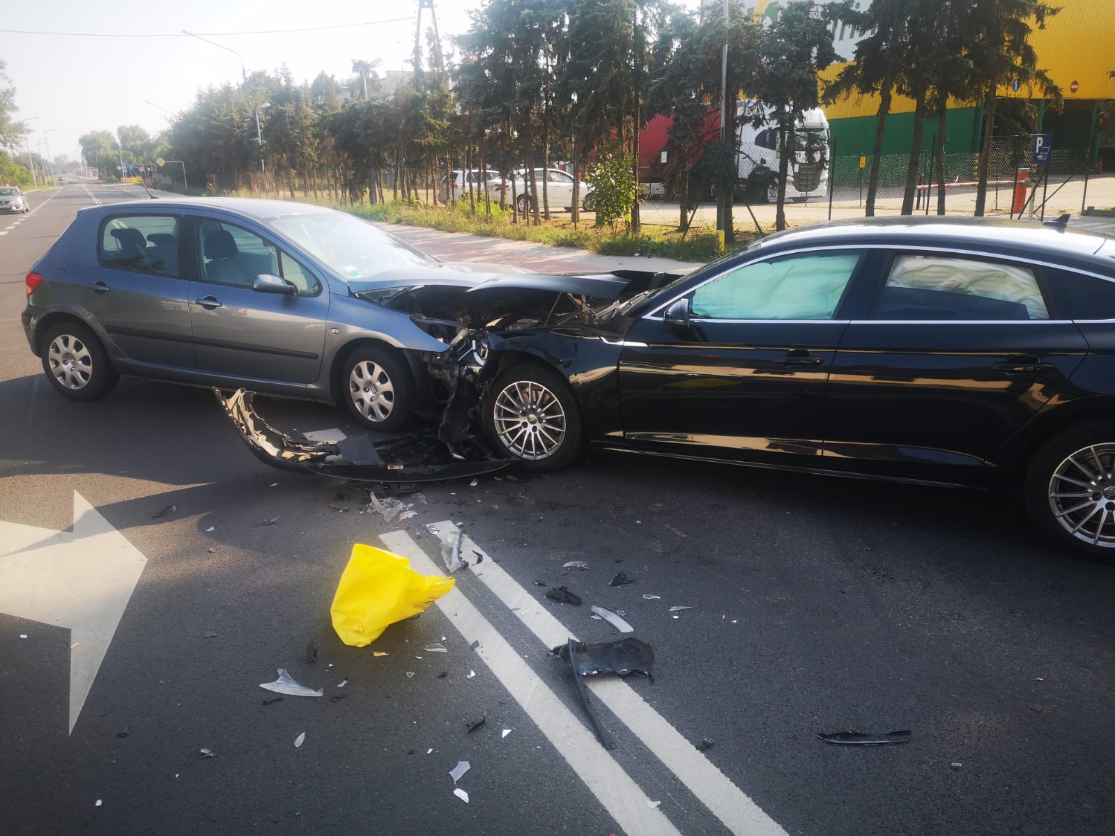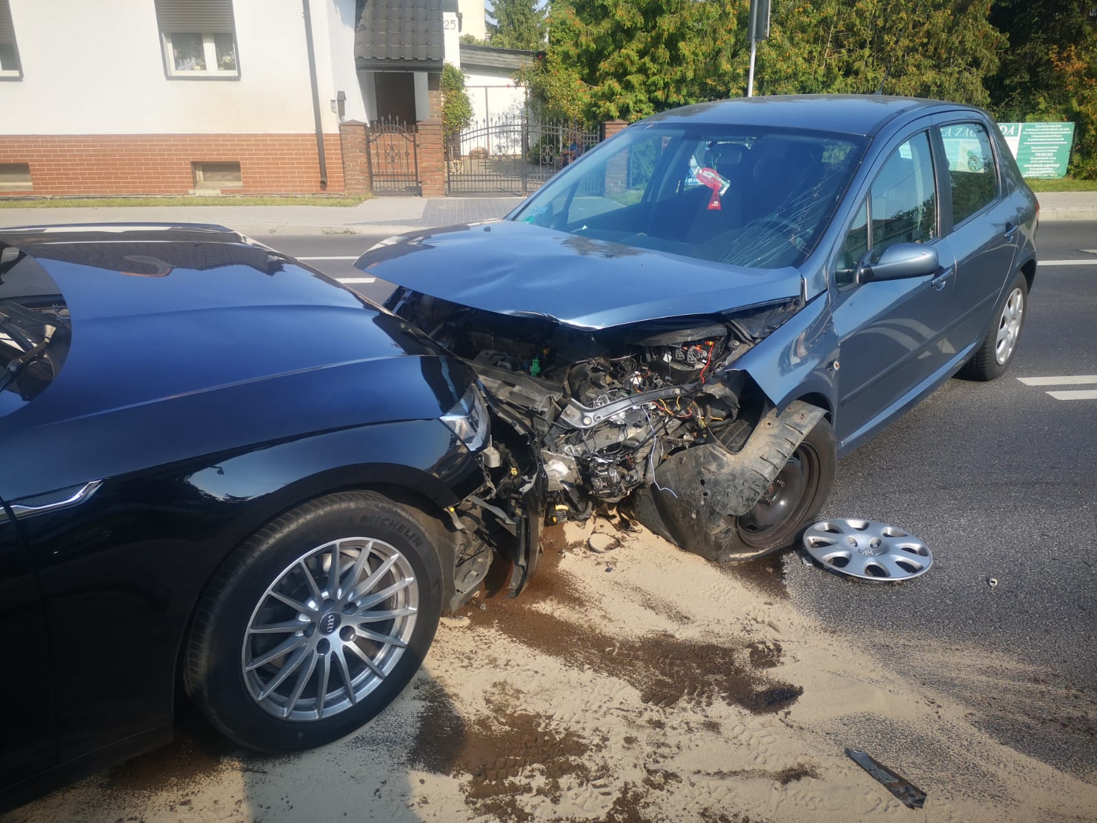 ZDERZENIE DWÓCH SAMOCHODÓW, JEDNA OSOBA POSZKODOWANA