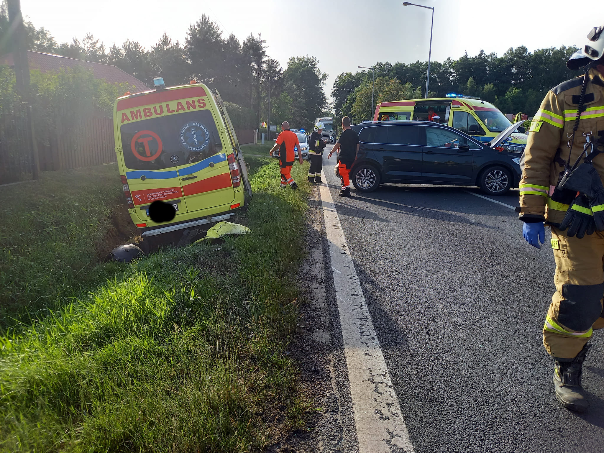W sobotę, 18 czerwca o godz. 18.16 do dyżurnego Stanowiska Kierowania Państwowej Straży Pożarnej w Szamotułach wpłynęło zgłoszenie z Centrum Powiadamiania Ratunkowego, które informowało o wypadku drogowym z udziałem karetki Pogotowia Ratunkowego i samochodu osobowego oraz osobach poszkodowanych na drodze wojewódzkiej nr 184 w miejscowości Pamiątkowo gm. Szamotuły.