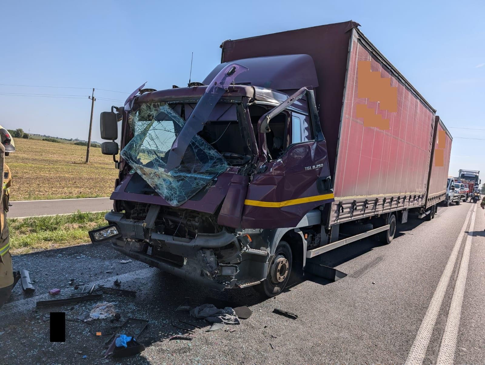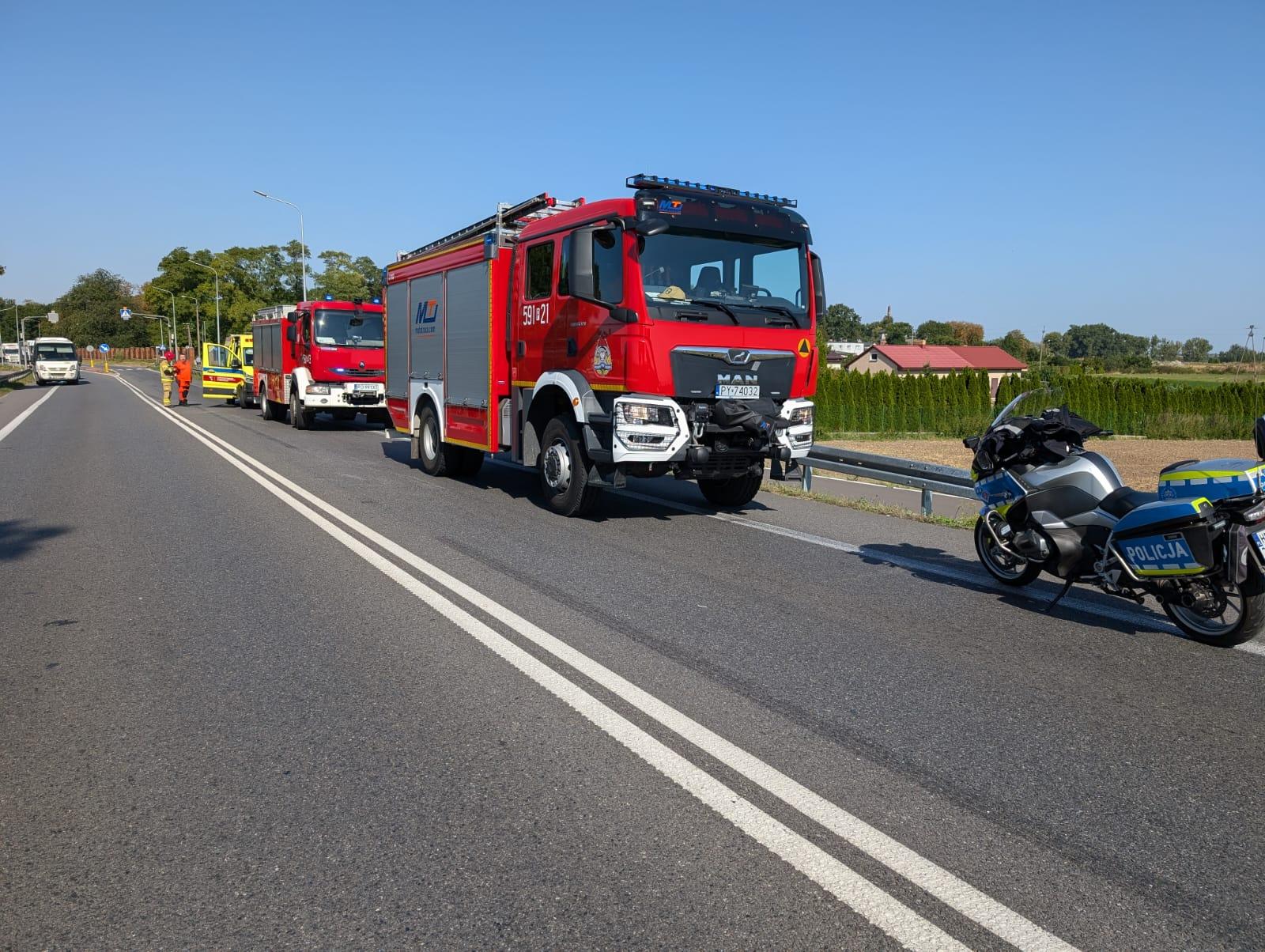 Po dojeździe na miejsce zdarzenia strażacy zastali samochód ciężarowy marki MAN, który uderzył w tył naczepy pojazdu ciężarowego, w wyniku tego drugi z pojazdów uderzył w samochód dostawczy marki Mercedes.
