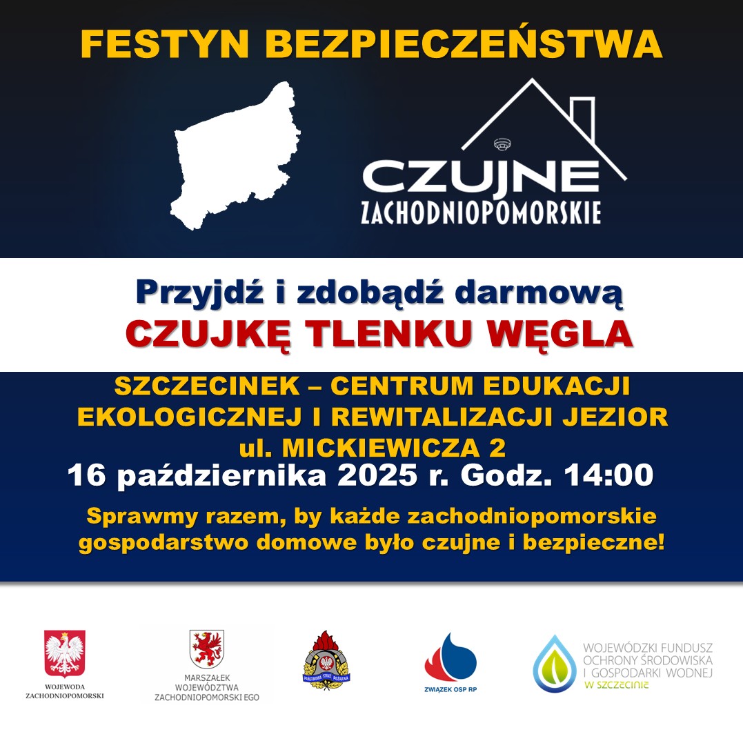 16 października 2025 roku o godzinie 14:00 zapraszamy mieszkańców Szczecinka na "Festyn Bezpieczeństwa", który odbędziesię przy Centrum Edukacji Ekologicznej i Rewitalizacji Jezior, ul. Mickiewicza 2 w Szczecinku.