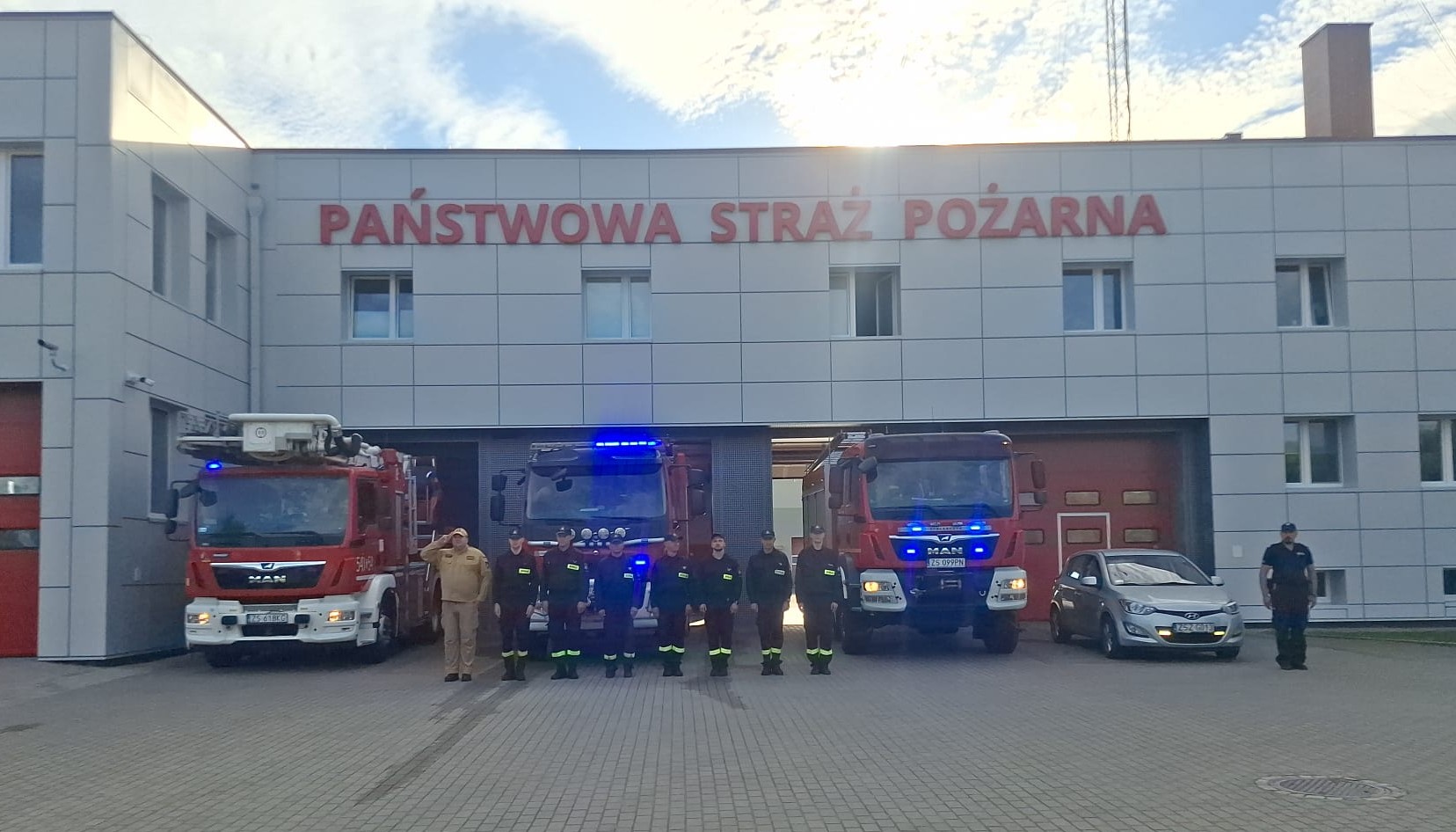 W dniu dzisiejszym o godzinie 18:00 strażacy z Komendy Powiatowej Państwowej Straży Pożarnej w Szczecinku wspólnie z funkcjonariuszami z Komendy Powiatowej Policji w Szczecinku oraz druhowie OSP z powiatu szczecineckiego oddali hołd strażakowi z Ochotniczej Straży Pożarnej w Sierakowicach, który zginął 13 sierpnia 2025 roku w trakcie prowadzonych działań ratowniczo-gaśniczych podczas pożaru zakładu produkcyjnego w Kawlach.