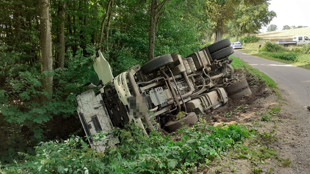 23 sierpnia br. o godzinie 1225 Stanowisko Kierowania Komendanta Powiatowego Państwowej Straży Pożarnej w Szczecinku otrzymało zgłoszenie o zdarzeniu drogowym przy miejscowości Kwakowo, gmina Szczecinek, w którym doszło do kolizji samochodu ciężarowego (pojazd wpadł do rowu). Na miejsce zdarzenia zadysponowane zostały zastępy z jednostki ratowniczo-gaśniczej Państwowej Straży Pożarnej w Szczecinku oraz zastęp Ochotniczej Straży Pożarnej Wierzchowo. Działania zastępów ratowniczych polegały na zabezpieczeniu miejsca zdarzenia odłączeniu zasilania w pojeździe.