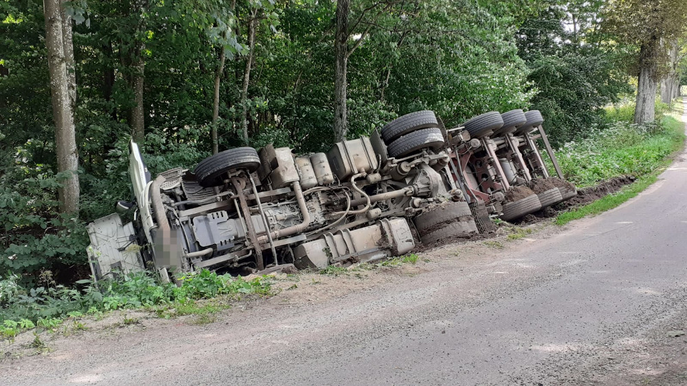 Kolizja samochodu ciężarowego przy miejscowości Kwakowo