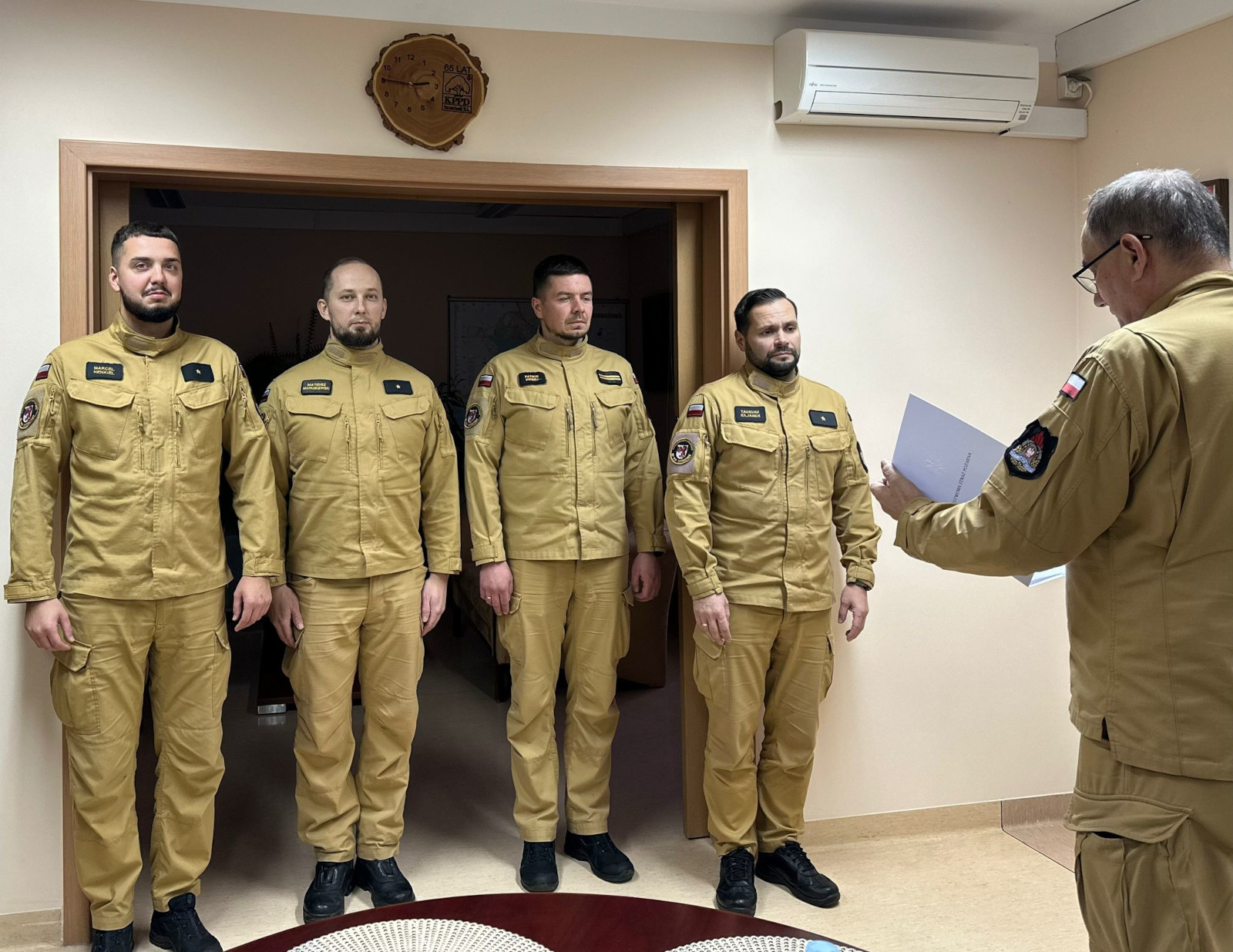 26 listopada 2025 roku Komendant Powiatowy Państwowej Straży Pożarnej w Szczecinku st. kpt. Mirosław Śledź w obecności funkcjonariuszy Komendy Powiatowej PSP w Szczecinku, wręczył asp. Tadeuszowi Kiljanek nagrodę Zachodniopomorskiego Komendanta Wojewódzkiego PSP za wzorową służbę, profesjonalizm oraz zaangażowanie w realizację zadań na rzecz bezpieczeństwa.
