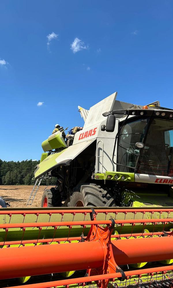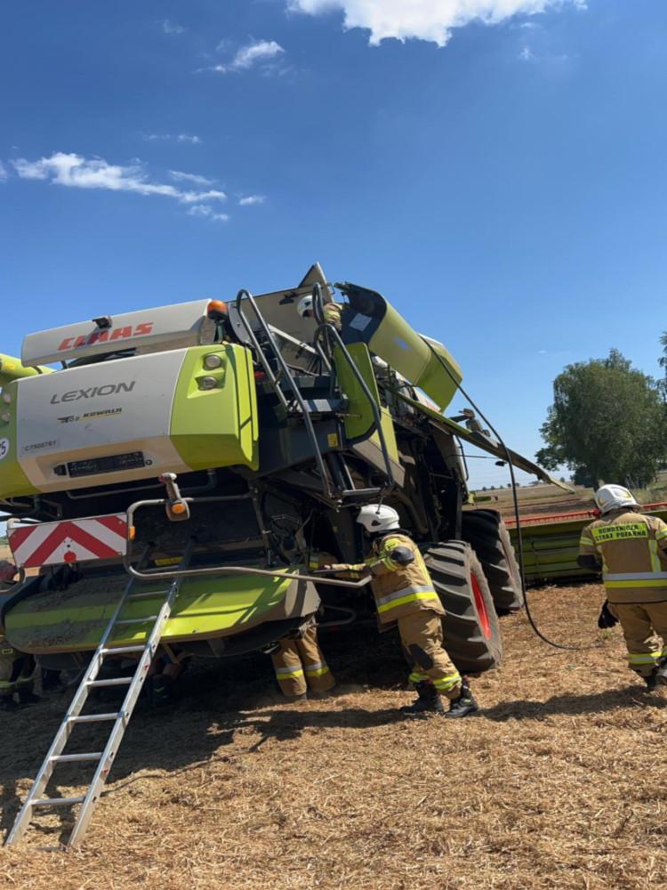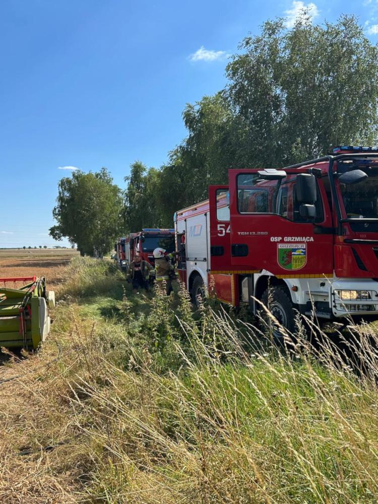 Pożar kombajnu zbożowego przy miejscowości Wielawino