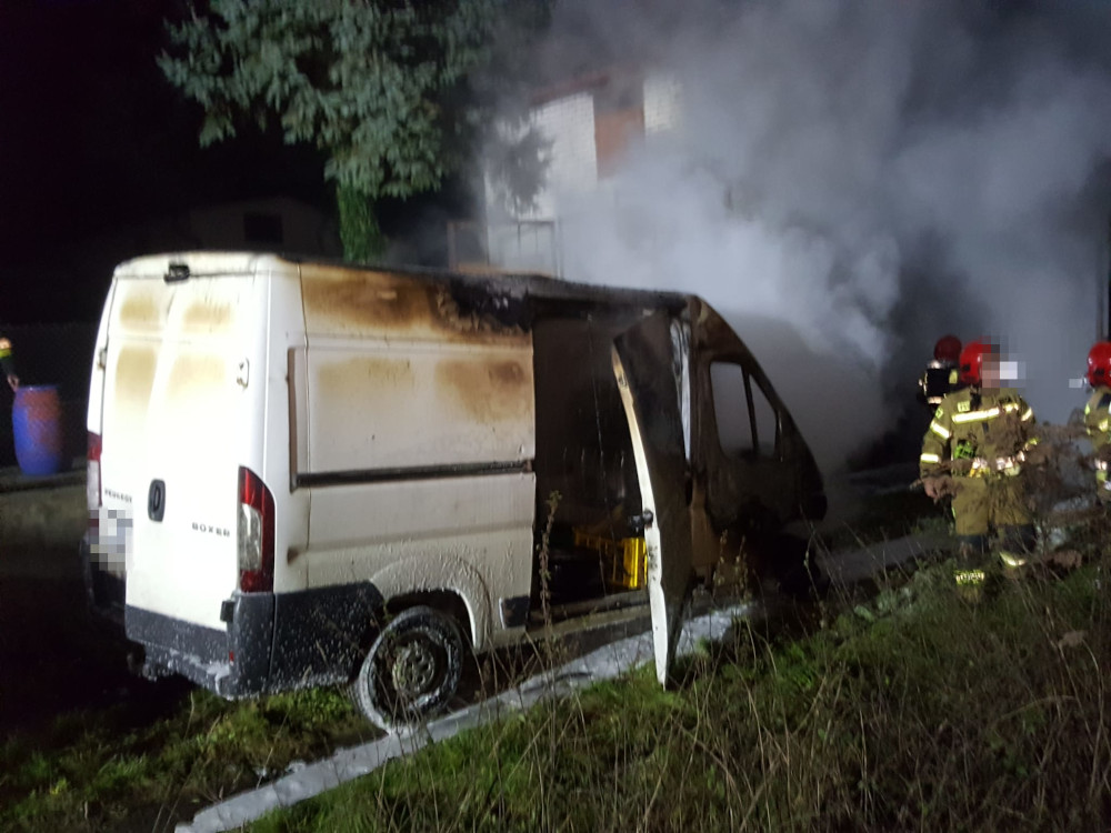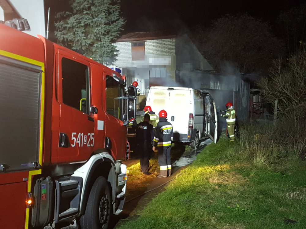Pożar samochodu dostawczego w Szczecinku