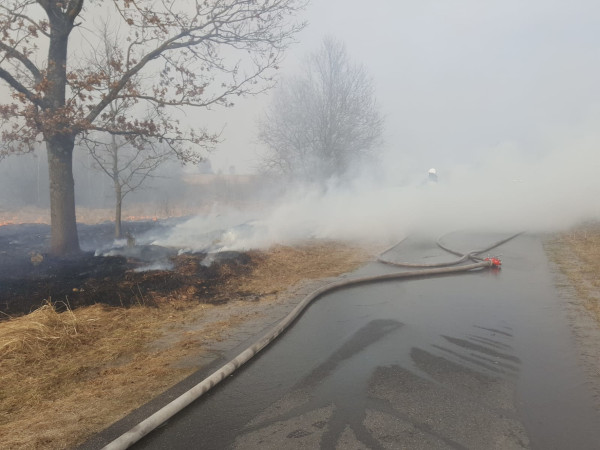 Pożar trawy i krzewów przy miejscowości Godzimierz.