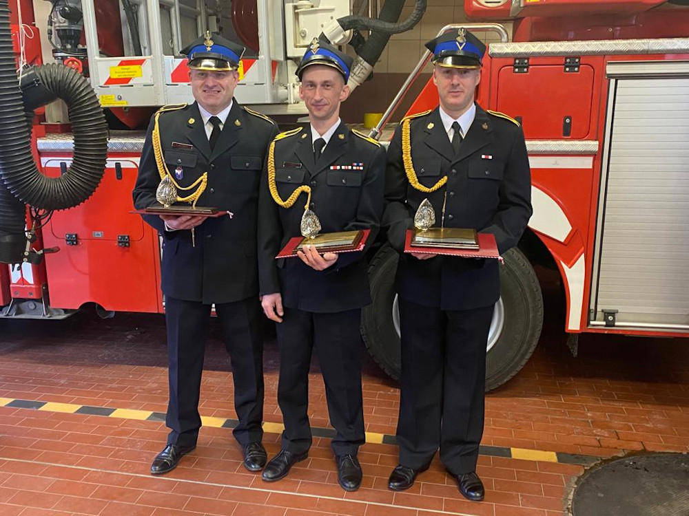 25 lutego 2022 roku w Komendzie Powiatowej PSP w Szczecinku odbyło się uroczyste pożegnanie ze służbą odchodzących na zaopatrzenie emerytalne asp. Łukasza Lachowskiego, st. ogn. Łukasza Dymusa oraz st. ogn. Sławomira Kowalskiego.
