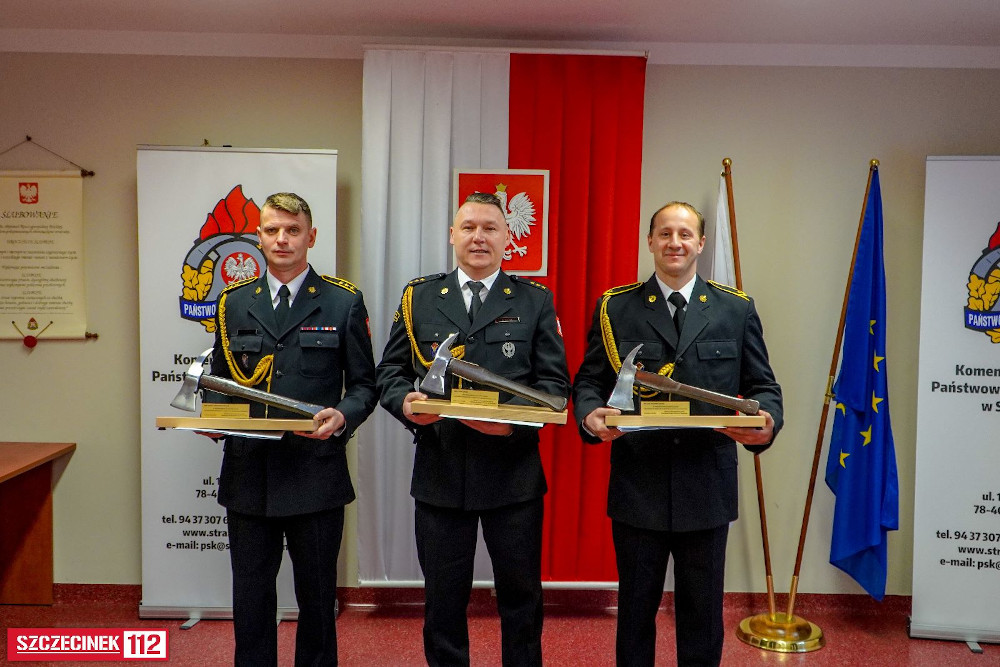 24 lutego 2023 roku w Komendzie Powiatowej PSP w Szczecinku odbyło się uroczyste pożegnanie ze służbą odchodzących na zaopatrzenie emerytalne kpt. Piotra Kiczuk, asp. sztab. Sebastiana Głuszak oraz mł. asp. Ireneusza Jarosz.