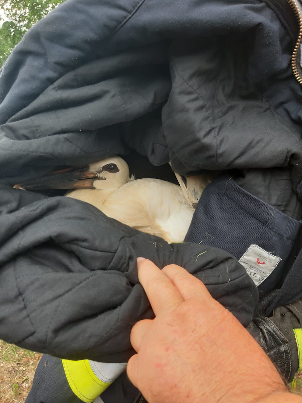 Strażacy uratowali małego bociana