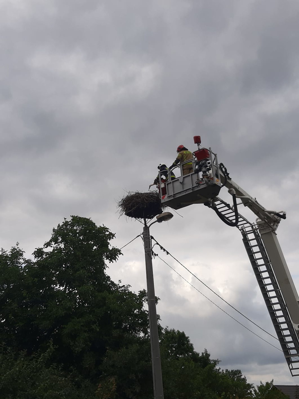 19 lipca br. Stanowisko Kierowania Komendanta Powiatowego Państwowej Straży Pożarnej w Szczecinku otrzymało zgłoszenie o nietypowym zdarzeniu w miejscowości Stary Chwalim. Osoba postronna zgłosiła, że mały bocian wypadł z gniazda i nie umie jeszcze latać oraz nie ma możliwości tam wrócić. Na miejsce zdarzenia zadysponowany został zastęp z Ochotniczej Straży Pożarnej w Starym Chwalimiu oraz podnośnik z jednostki ratowniczo-gaśniczej Państwowej Straży Pożarnej w Szczecinku. Działania zastępów polegały na zabezpieczeniu miejsca zdarzenia, rozstawieniu podnośnika SHD 23, który umożliwił dotarcie do gniazda.