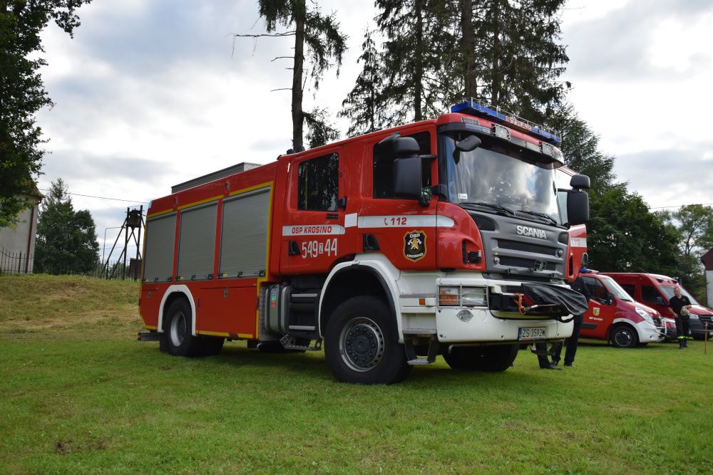 Przekazanie ciężkiego samochodu ratowniczo-gaśniczego marki SCANIA z Komendy Powiatowej Państwowej Straży Pożarnej w Szczecinku dla OSP Krosino |