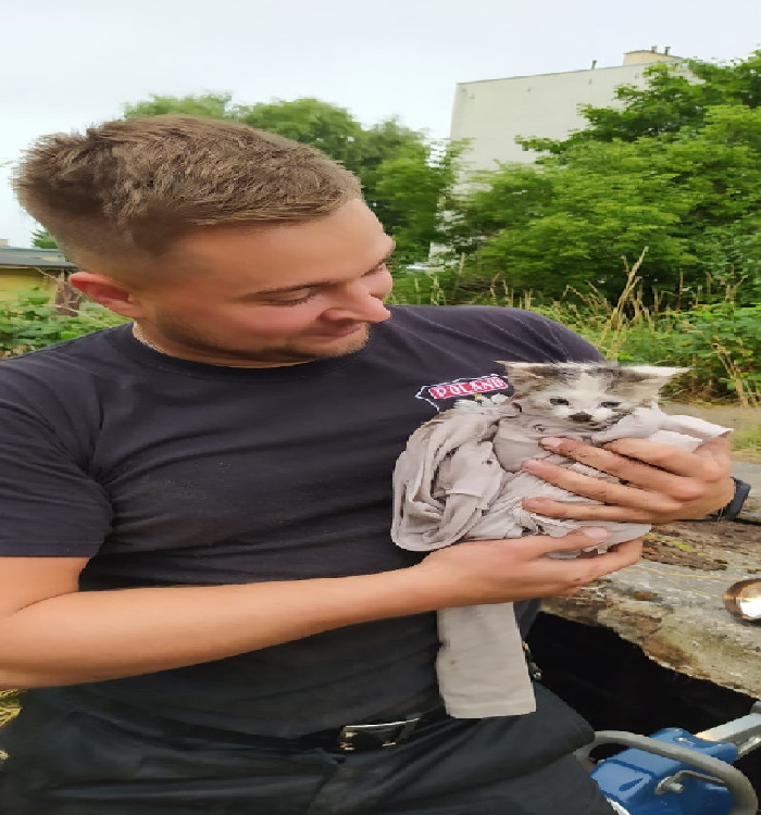 9 lipca br. o godzinie 905 Stanowisko Kierowania Komendanta Powiatowego Państwowej Straży Pożarnej w Szczecinku otrzymało zgłoszenie o nietypowym zdarzeniu w miejscowości Szczecinek, ul. Armii Krajowej. Osoba postronna poinformowała, że pod płytami betonowymi znajduje kotek i nie może się wydostać. Na miejsce zdarzenia zadysponowany został zastęp z jednostki ratowniczo-gaśniczej Państwowej Straży Pożarnej w Szczecinku. Działania zastępu polegały na uniesieniu płyt betonowych za pomocą sprzętu hydraulicznego i wydobyciu małego kota, którego przekazano właścicielowi.