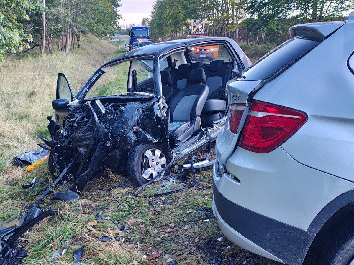 29 września br. Stanowisko Kierowania Komendanta Powiatowego Państwowej Straży Pożarnej w Szczecinku otrzymało zgłoszenie o zdarzeniu w którym uczestniczyły cztery pojazdy osobowe na drodze krajowej nr 11 przy miejscowości Białe. Na miejsce zdarzenia zadysponowane zostały zastępy z jednostki ratowniczo-gaśniczej Państwowej Straży Pożarnej w Szczecinku oraz zastępy OSP Wierzchowo, Parsęcko oraz Storkowo. Po przybyciu na miejsce zdarzenia zastano: cztery pojazdy osobowe uczestniczące w zdarzeniu. Pojazdami podróżowało dziesięć osób i dwa psy, pięć osób poszkodowanych (dwóch osób nie udało się uratować). Pozostałe pięć osób same opuściły pojazdy. Działania zastępów ratowniczych polegały na zabezpieczeniu miejsca zdarzenia, wykonanie dostępu do osoby poszkodowanej w pojeździe, udzieleniu pomocy przedmedycznej. Po zbadaniu przez Zespół Ratownictwa Medycznego trzy osoby zostały zabrane do szpitala.