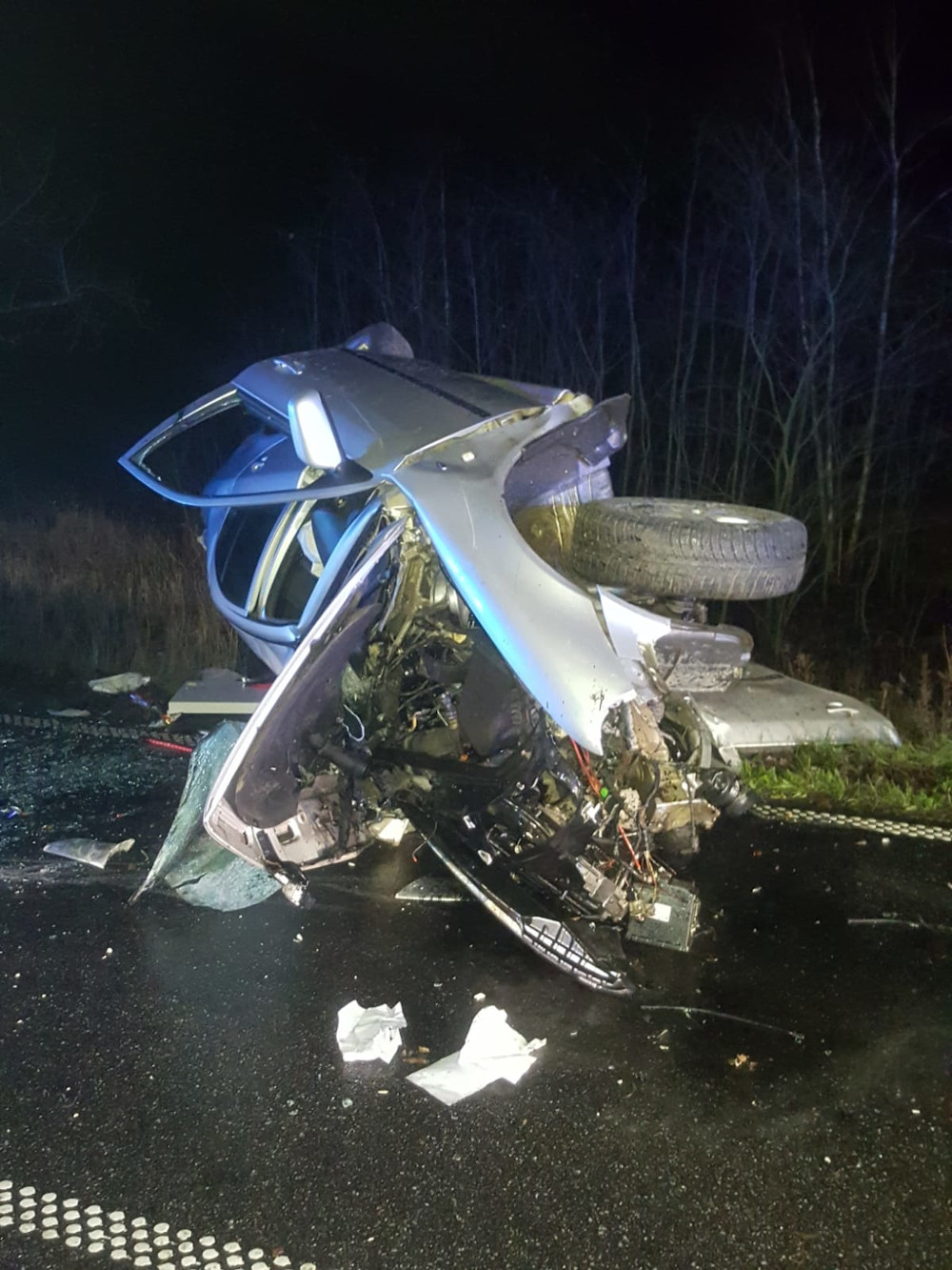 1 grudnia br. o godzinie 2251 Stanowisko Kierowania Komendanta Powiatowego Państwowej Straży Pożarnej w Szczecinku otrzymało zgłoszenie o zdarzeniu drogowym na drodze wojewódzkiej przy miejscowości Stary Grabiąż, w którym doszło do uderzenia samochodu osobowego w drzewo. Na miejsce zdarzenia zadysponowane zostały zastępy z jednostki ratowniczo-gaśniczej Państwowej Straży Pożarnej w Szczecinku oraz zastęp OSP Barwice. Po przybyciu na miejsce zdarzenia zastano, rozbity samochód osobowy, leżący na boku, osoba poszkodowana zaopatrywana przez Zespól Ratownictwa Medycznego. Działania zastępów ratowniczych polegały na zabezpieczeniu miejsca zdarzenia, odłączeniu zasilania w pojeździe, oświetlenie terenu działań oraz pomoc Policji w organizacji objazdu. Osoby poszkodowanej w tym zdarzeniu nie udało się uratować.