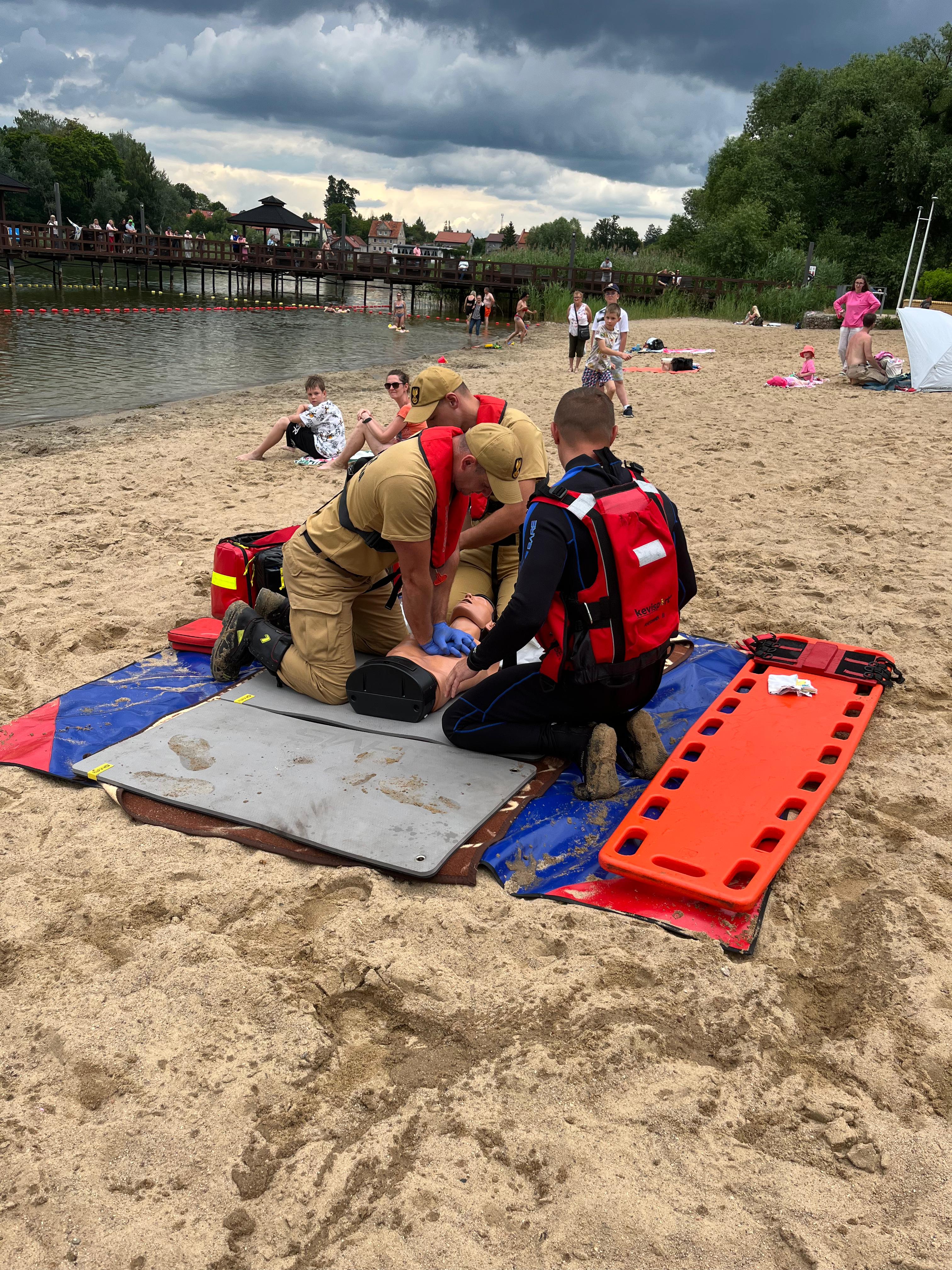 Jednym z kluczowych punktów programu był widowiskowy pokaz ratownictwa wodnego z udziałem strażaków-ratowników, którzy zaprezentowali profesjonalne działania podejmowane podczas akcji ratunkowej na akwenie wodnym. Zainteresowanie wydarzeniem było bardzo duże – frekwencja dopisała, a plażę licznie odwiedzili mieszkańcy oraz turyści wypoczywający nad Jeziorem Domowym Dużym.